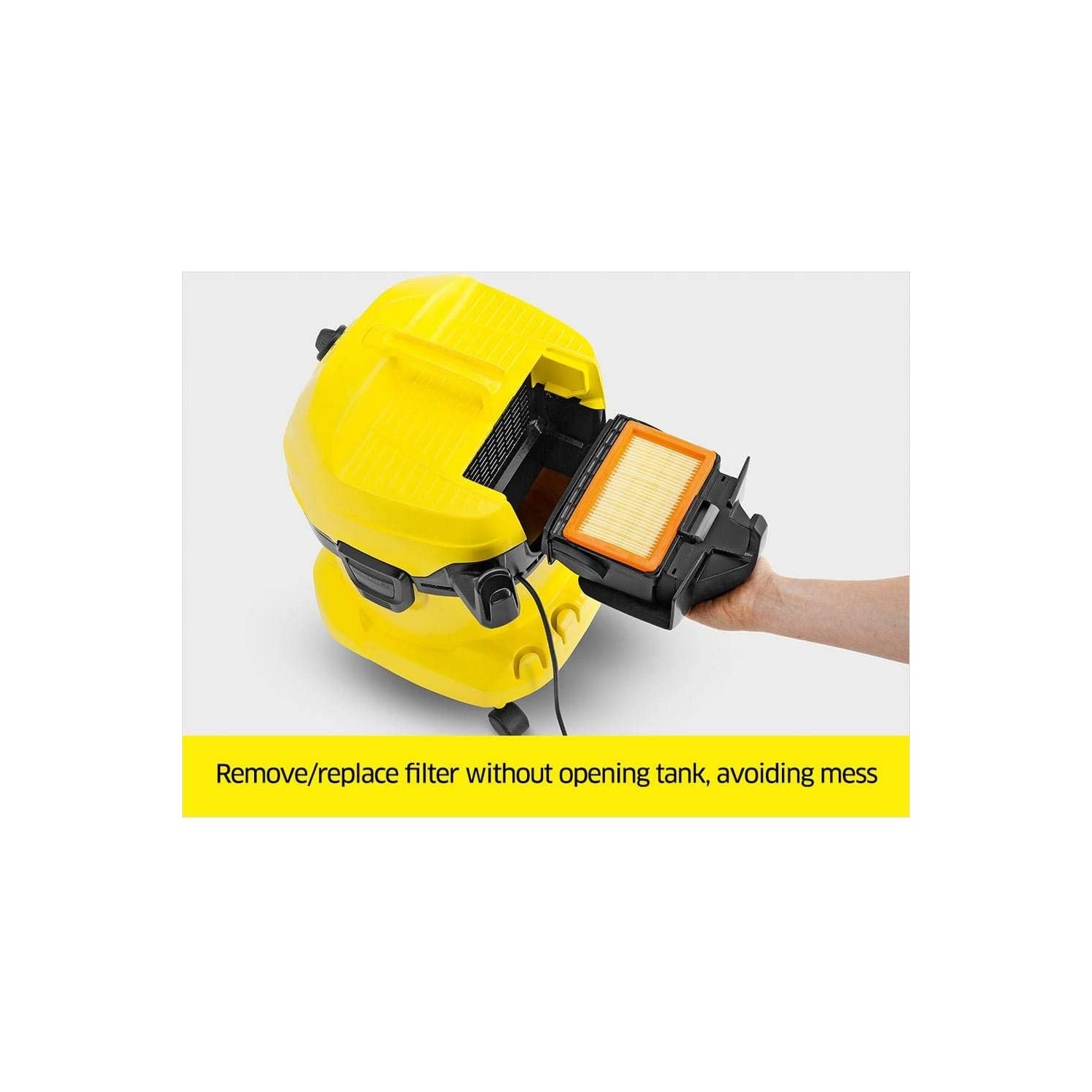 La posizione nella testata dell'aspiratore consente di utilizzare più spazio nel fusto per l'aspirazione dello sporco, anche liquido. Permette di aspirare solidi e liquidi senza cambiare il filtro. Adatto agli aspiratori solidi e liquidi delle gamme WD4, WD5, WD6, MV4, MV5, MV6.