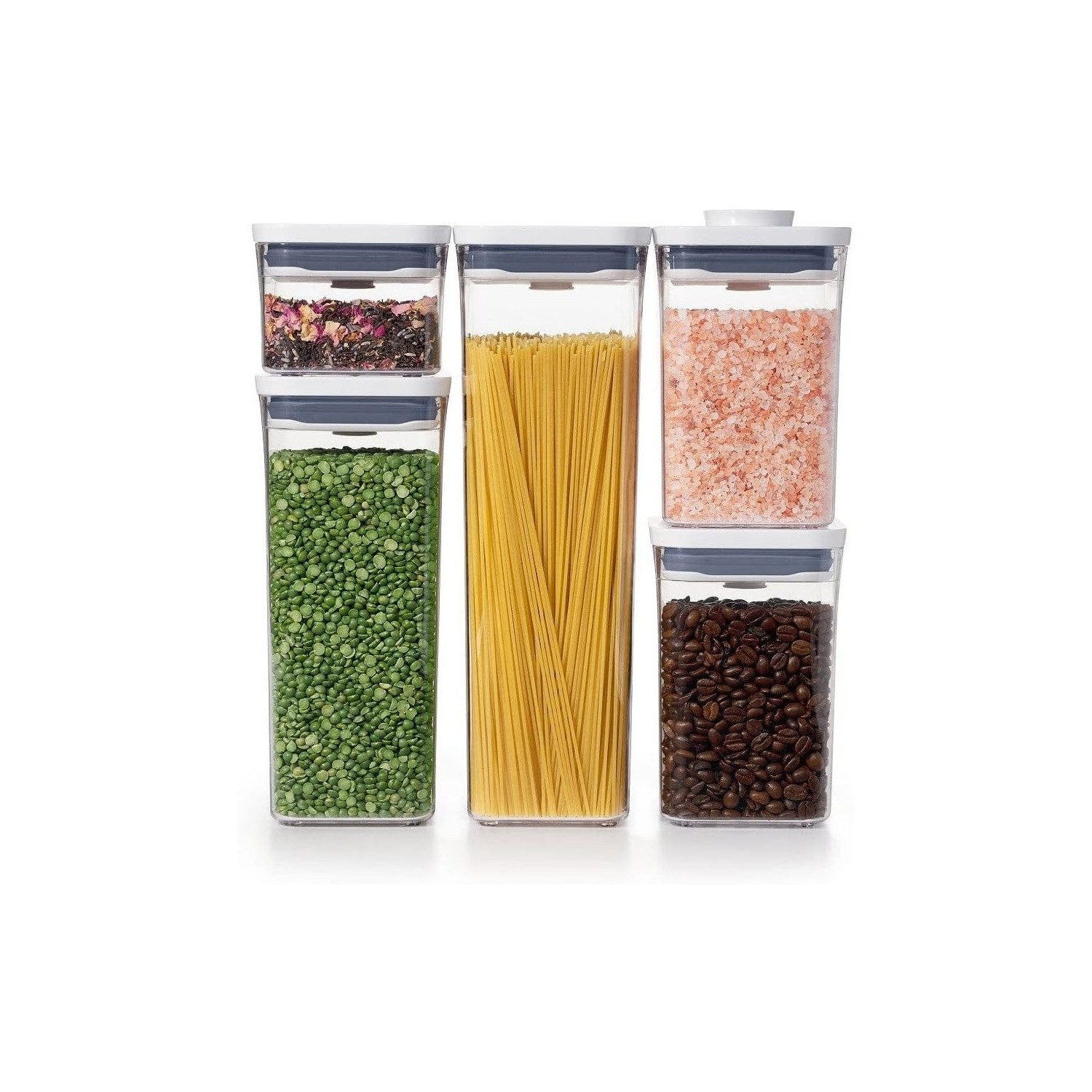 Il set di contenitori POP da 5 pezzi OXO Good Grips è la chiave per mantenere fresche le graffette della dispensa e le cucine organizzate.