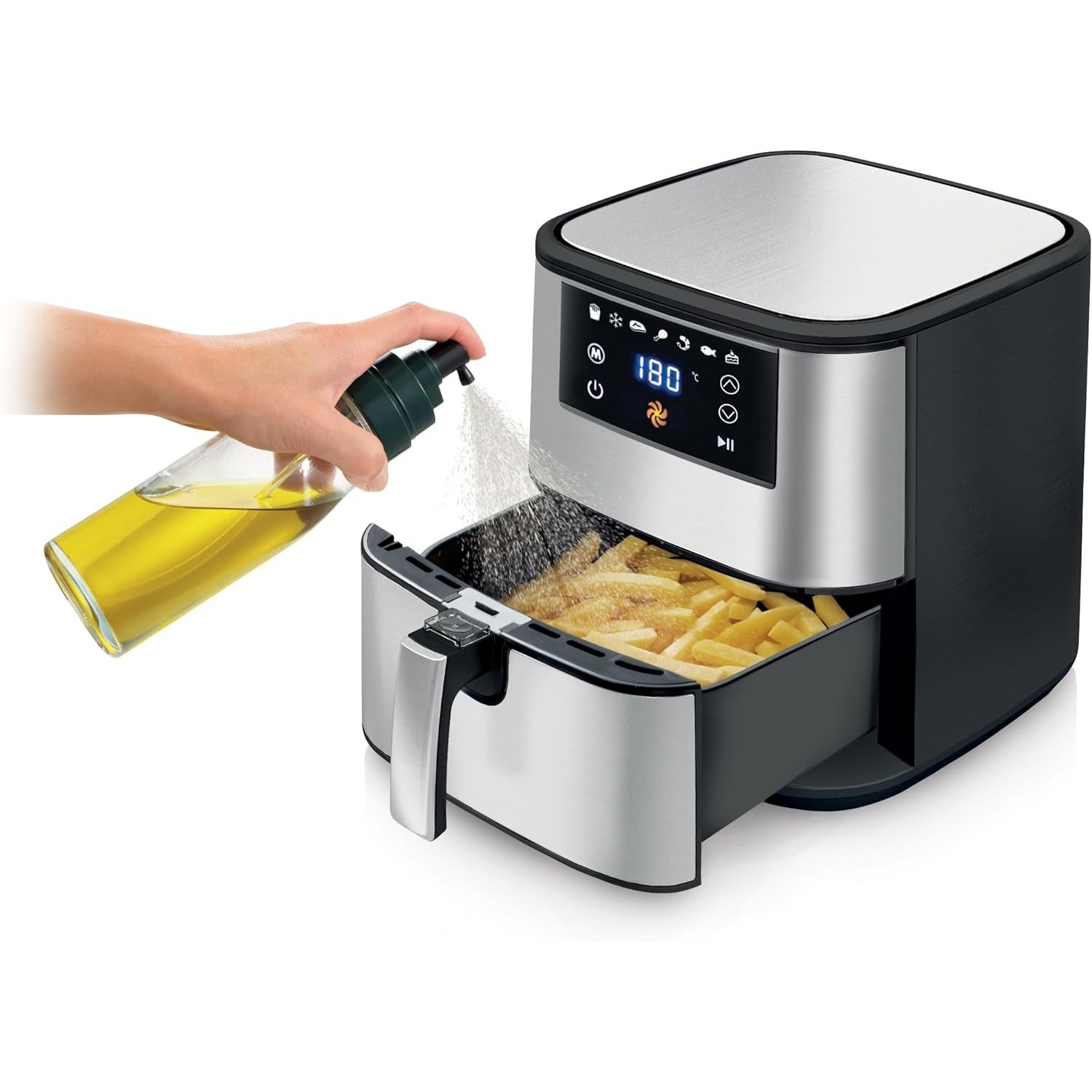 La oliera spray Tescoma della linea GrandCHEF è l'accessorio perfetto per chi cerca precisione e praticità in cucina. Ideale per l'uso con friggitrice ad aria, questo dosatore spray da 250 ml permette di nebulizzare olio e aceto in modo uniforme, garantendo una cottura ottimale e un condimento accurato delle tue pietanze. Con il suo design elegante e i materiali di alta qualità, questa oliera è un must-have per ogni cucina moderna.
