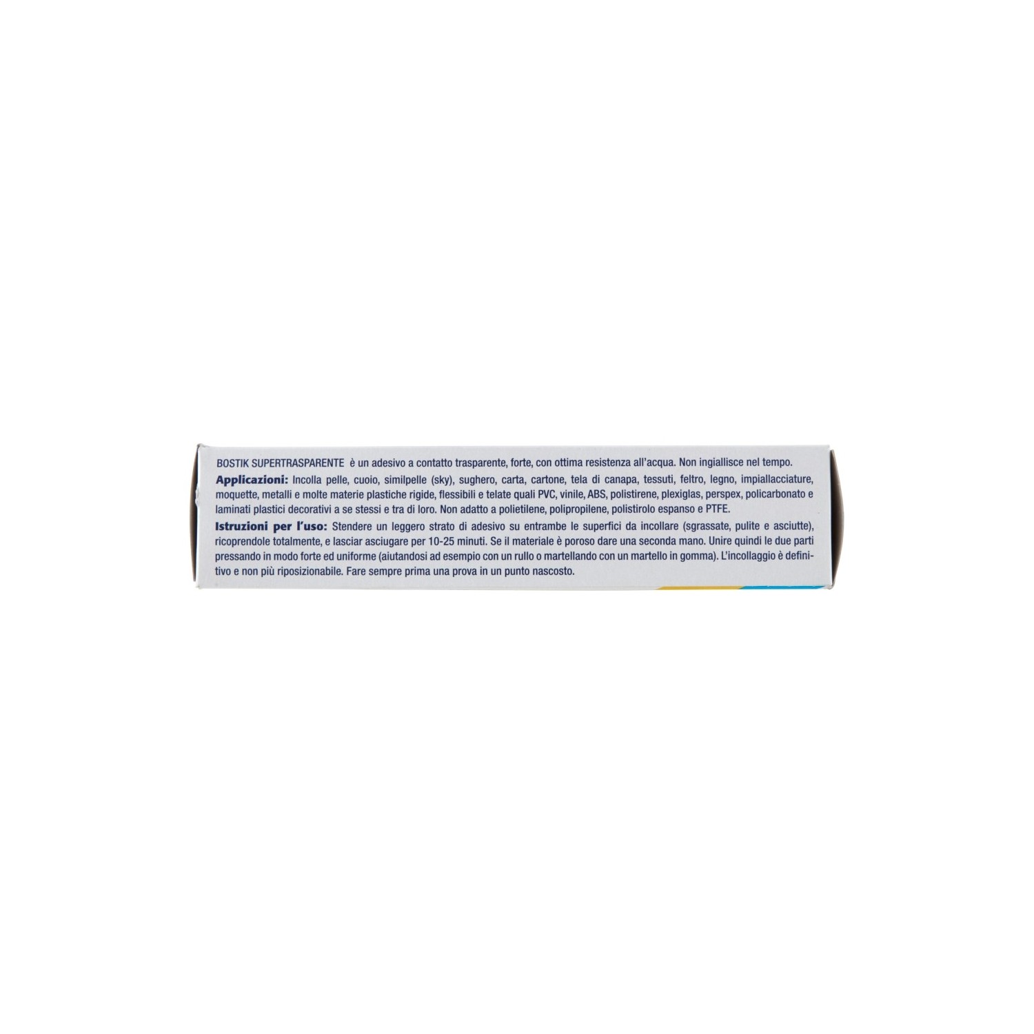 Bostik SuperTrasparente Astuccio 125g è una colla a contatto incolore e trasparente, perfetta per l'incollaggio di ampie superfici e vari materiali come plastica, pelle, legno e tessuti.