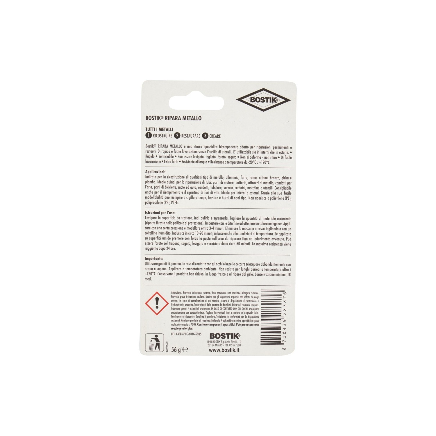 Caratteristiche principali Bostik Ripara Metallo: