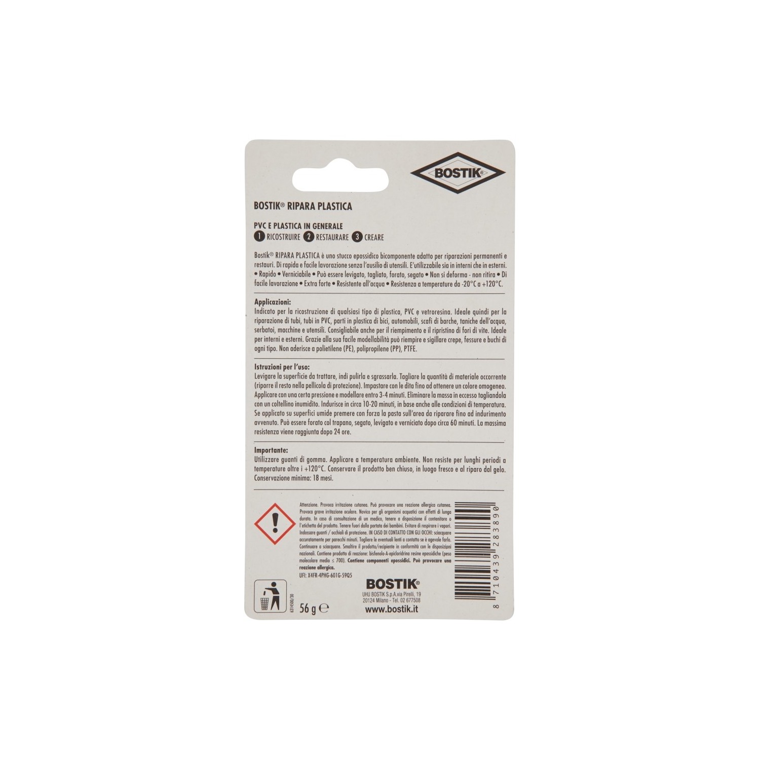 - 1 x Bostik Ripara Plastica 56g in blister