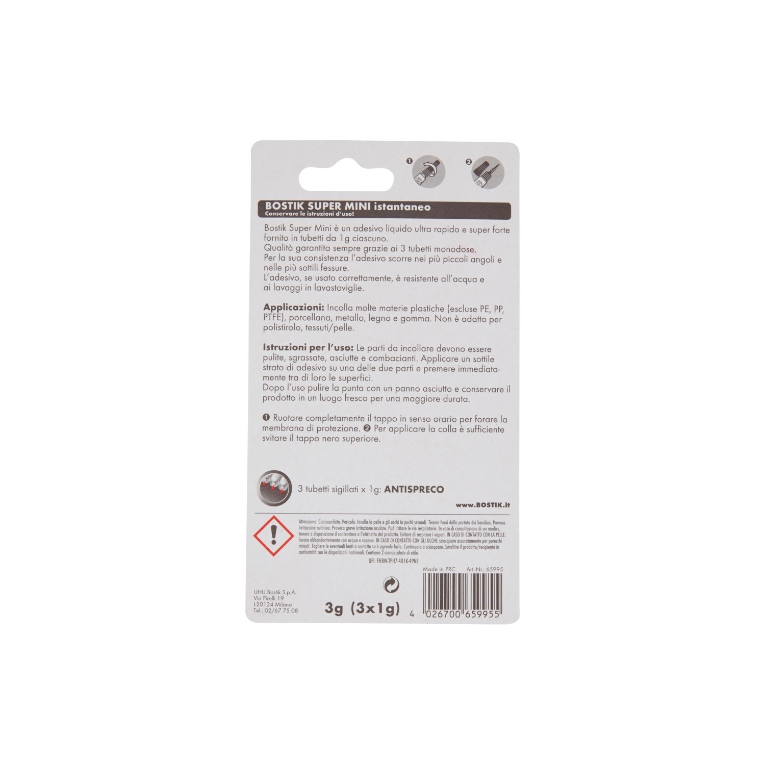 Colla Cianoacrilica Bostik Super Mini 3x1g - Adesivo Universale Istantanea Super Forte e Trasparente