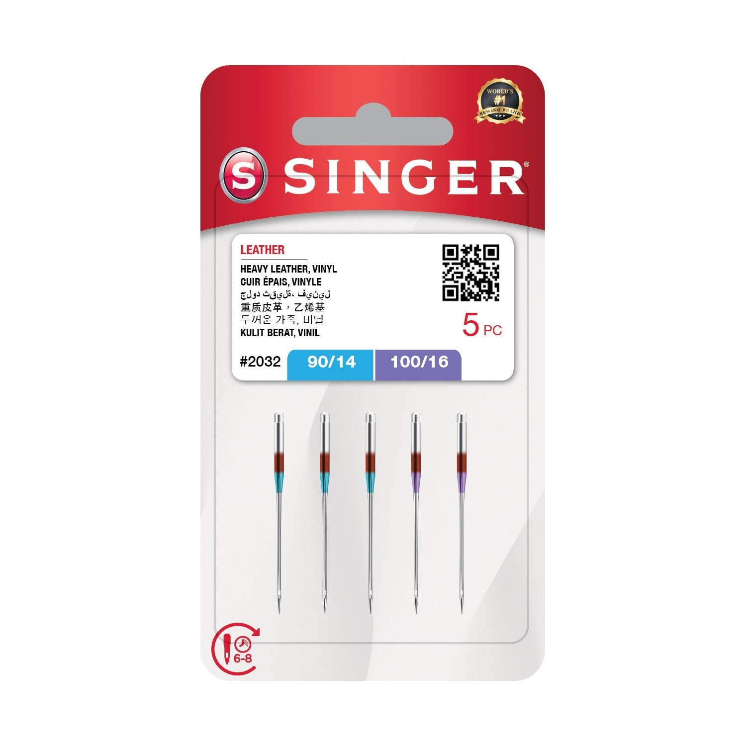 Gli Aghi Singer 2032 sono aghi specializzati progettati per cucire pelle, ecopelle, vinile e materiali spessi.
