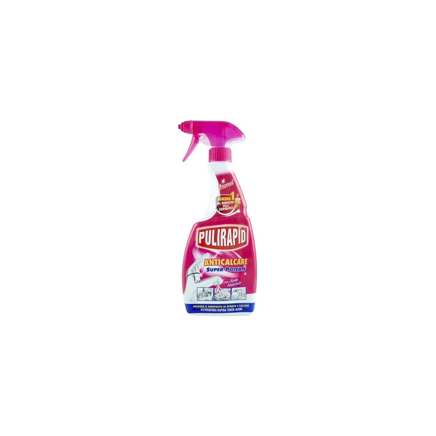 Grazie alla sua formula anticalcare potente e alla presenza di aceto, Pulirapid non solo pulisce ma lascia le superfici brillanti e fresche, riducendo il bisogno di pulizie frequenti.