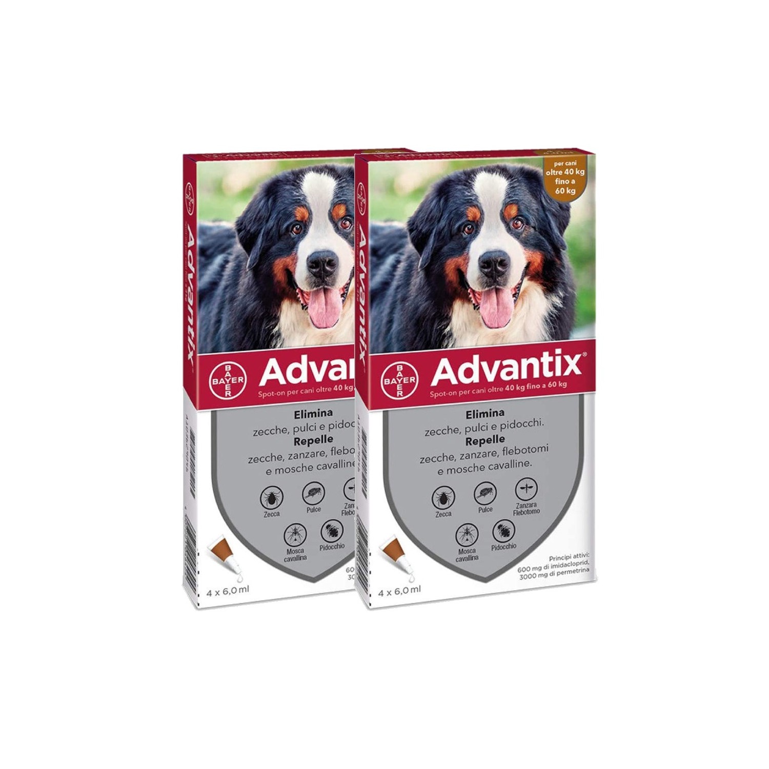 Advantix Antiparassitario Spot-on Per Cani da 40Kg a 60Kg - 2x4 da 6ml