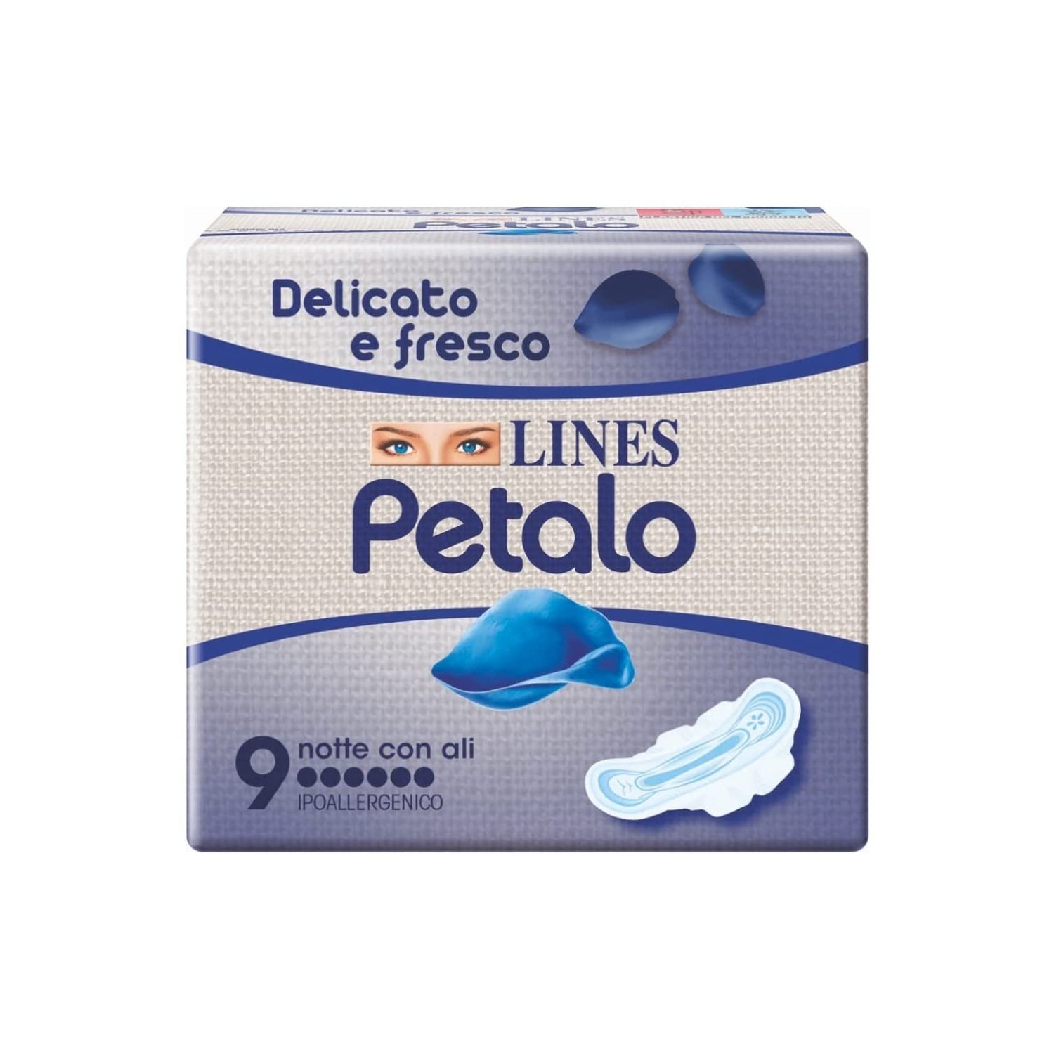 Lines Petalo Blu Notte con Ali - Assorbenti super assorbenti, delicati e freschi per la notte.
