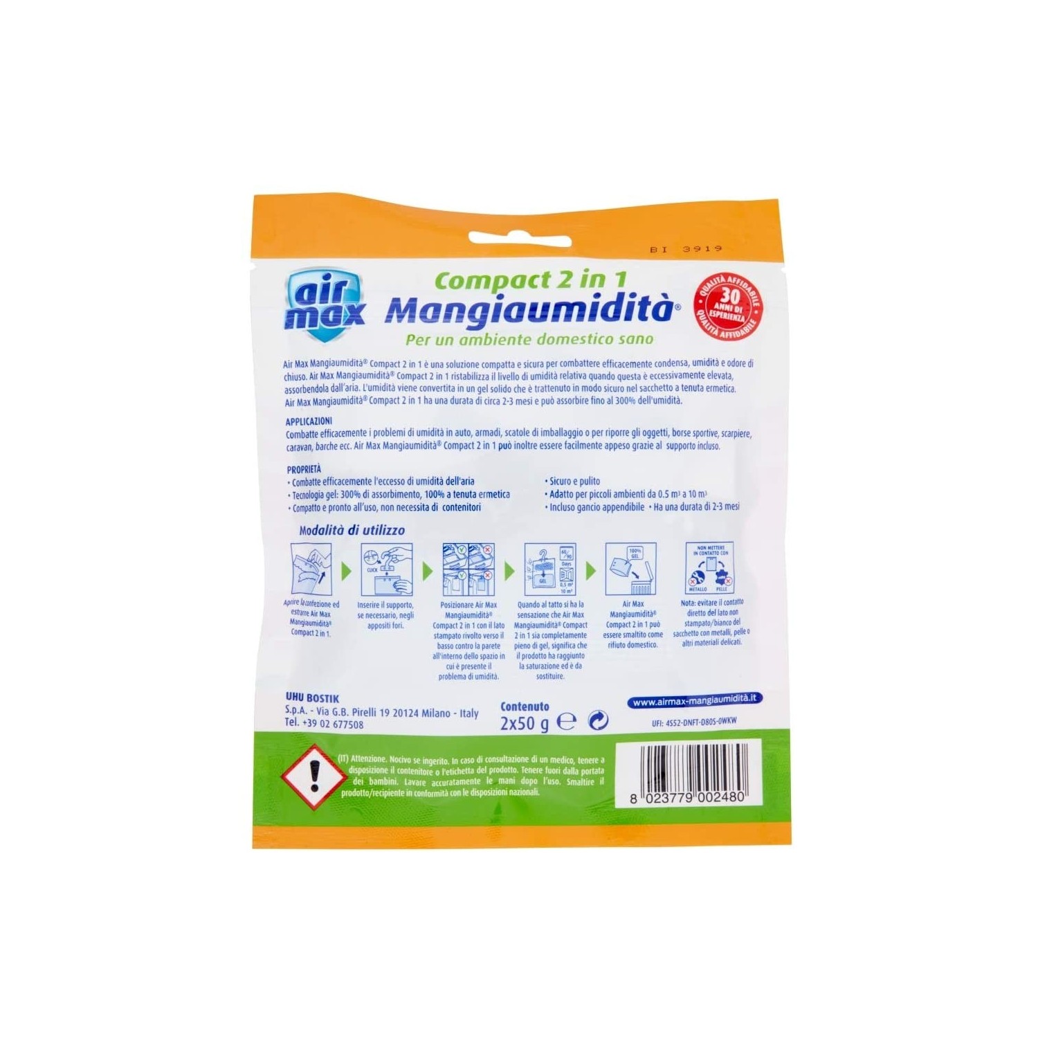 Ogni sacchetto Anti umidità è efficace fino a circa 6 settimane.