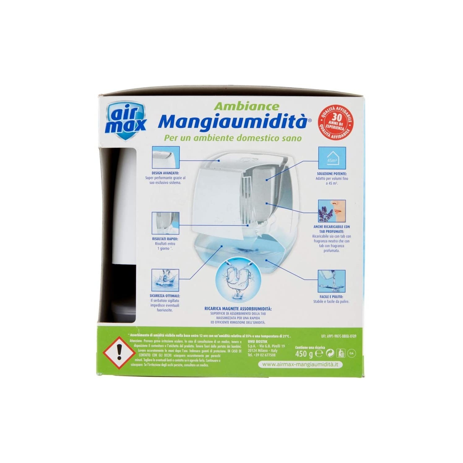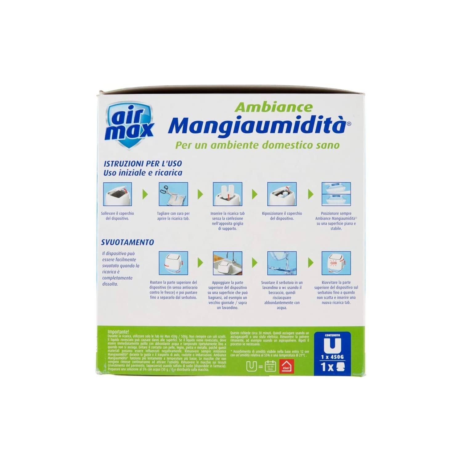- Kit completo: dispositivo mangiaumidità + ricarica da 450 g.