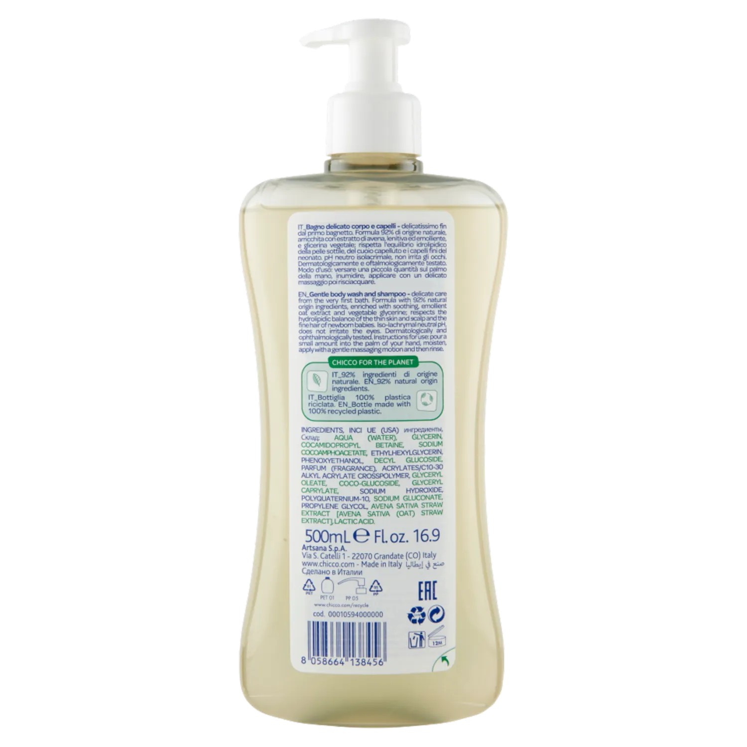 - Chicco Bagno Delicato Corpo e Capelli: Una formula naturale, arricchita con avena e glicerina, per pulire delicatamente la pelle e i capelli dei più piccoli.