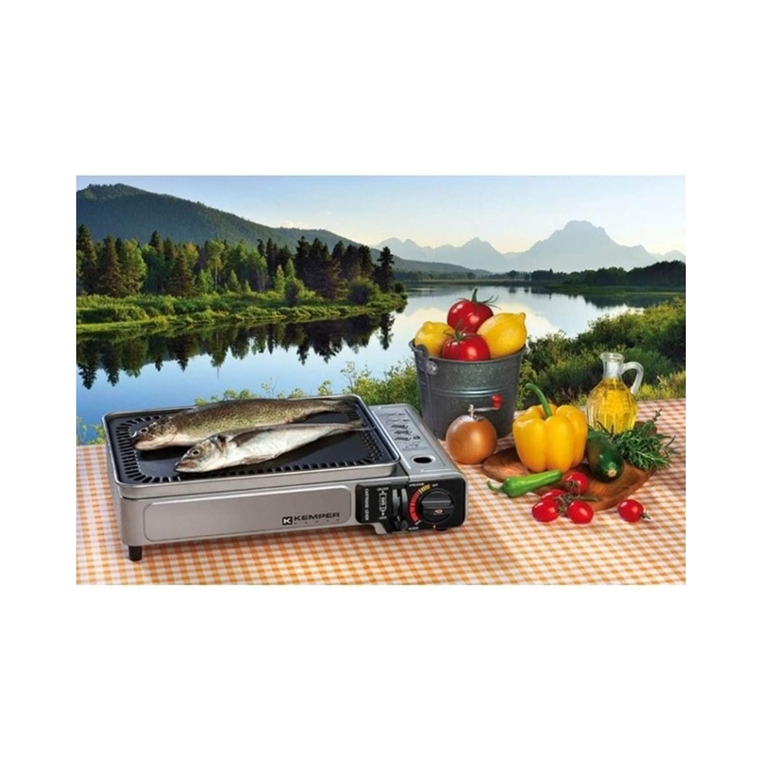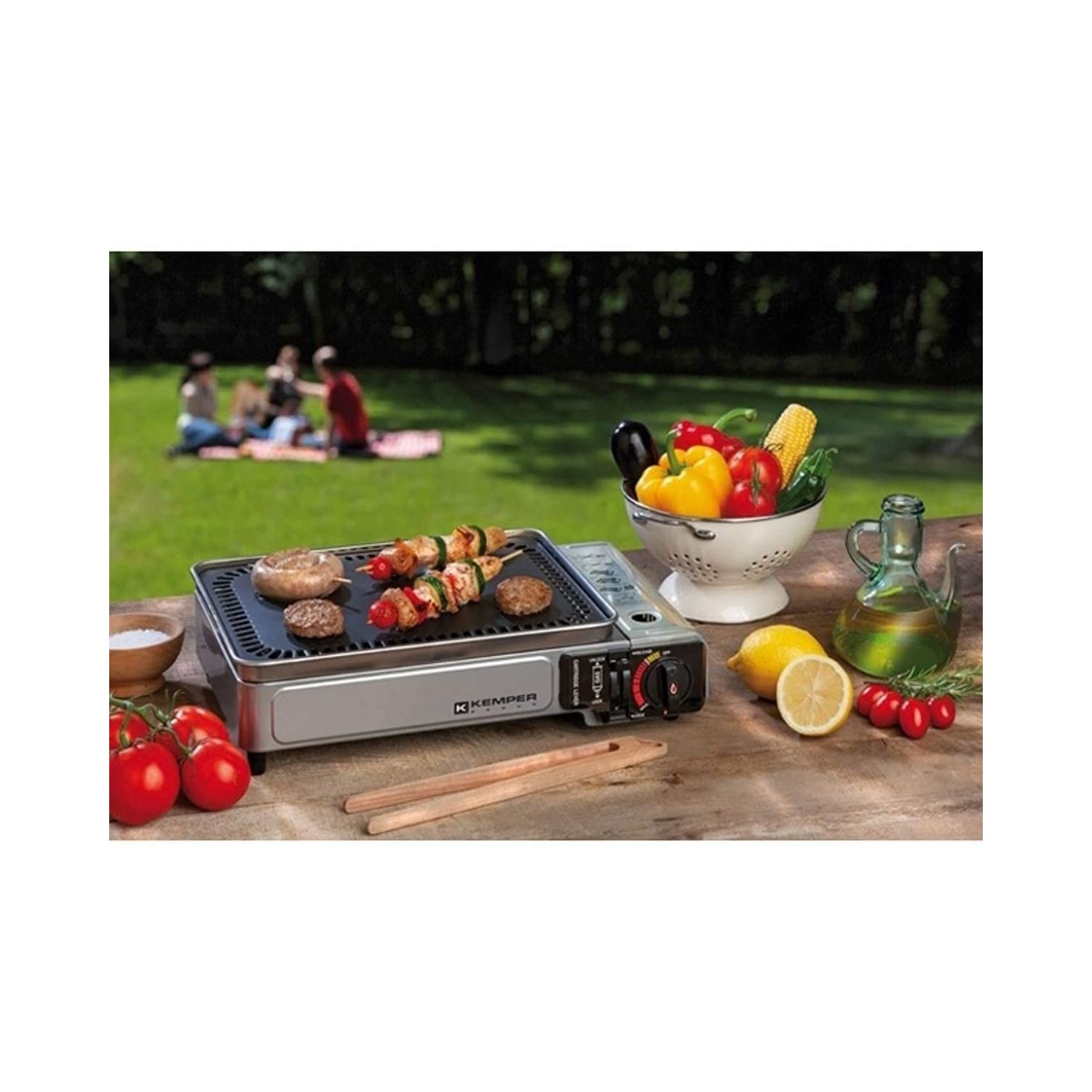 La Piastra a gas portatile Kemper è un dispositivo da tavolo ideale per grigliare e cucinare all’aperto.