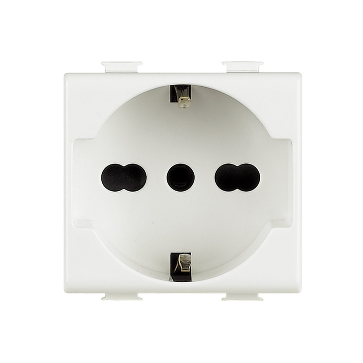 AM5440/16 presa standard tedesco e bipasso 10/16A 250 V ac - per spine standard Italia 2P 10A, 2P+T 10A, 2P+T 16A e standard tedesco 2P+T - colore bianco