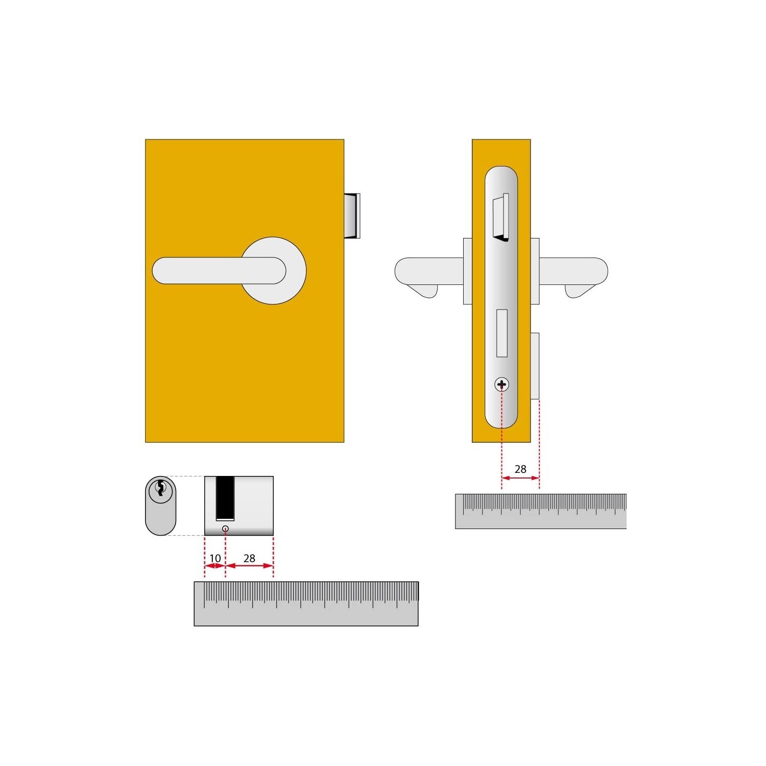 Il mezzo cilindro CISA ovale è installabile su porte di alluminio con serratura per fasce e montante.