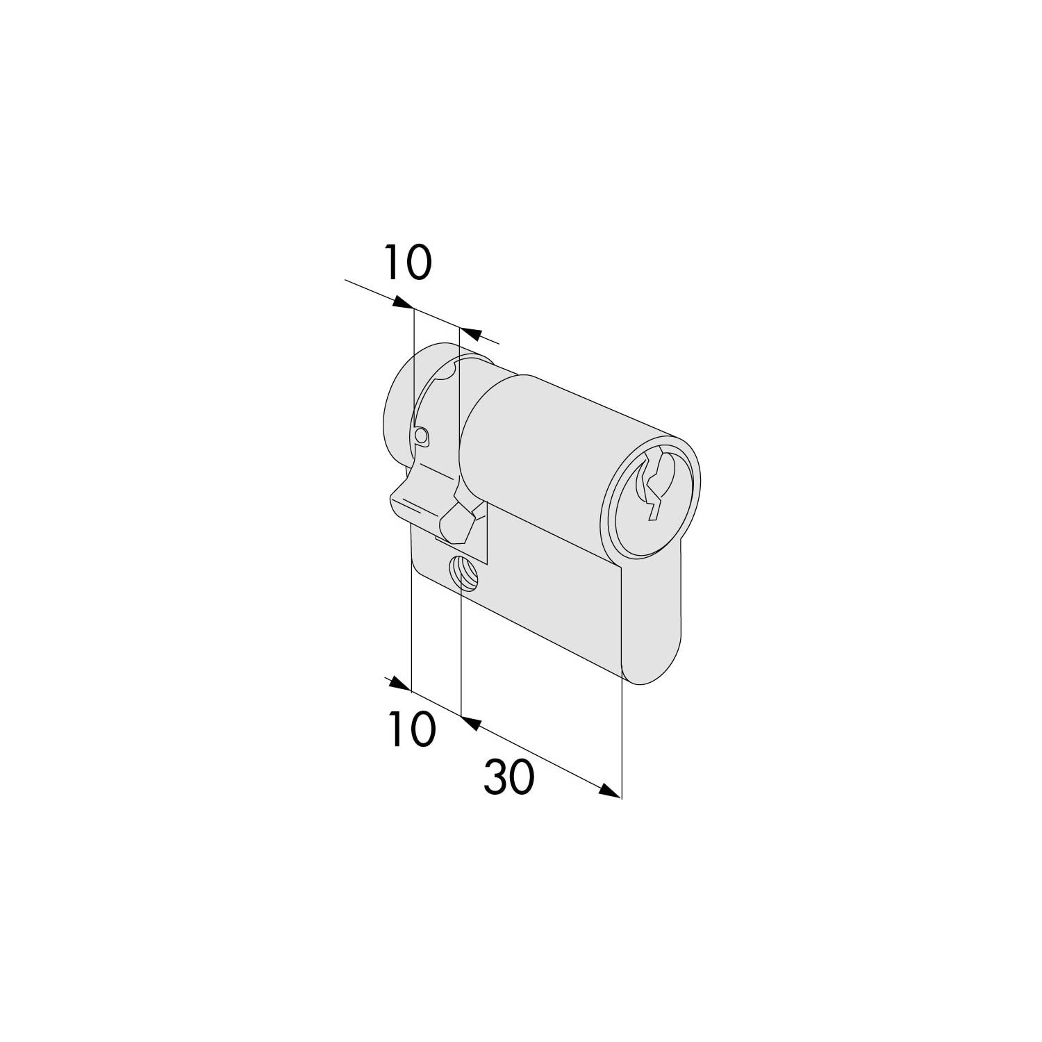 Per consentire l'ingresso del cilindro nella serratura durante l'installazione può essere necessario ruotare la chiave in modo che la camma non sporga verso l'esterno.
