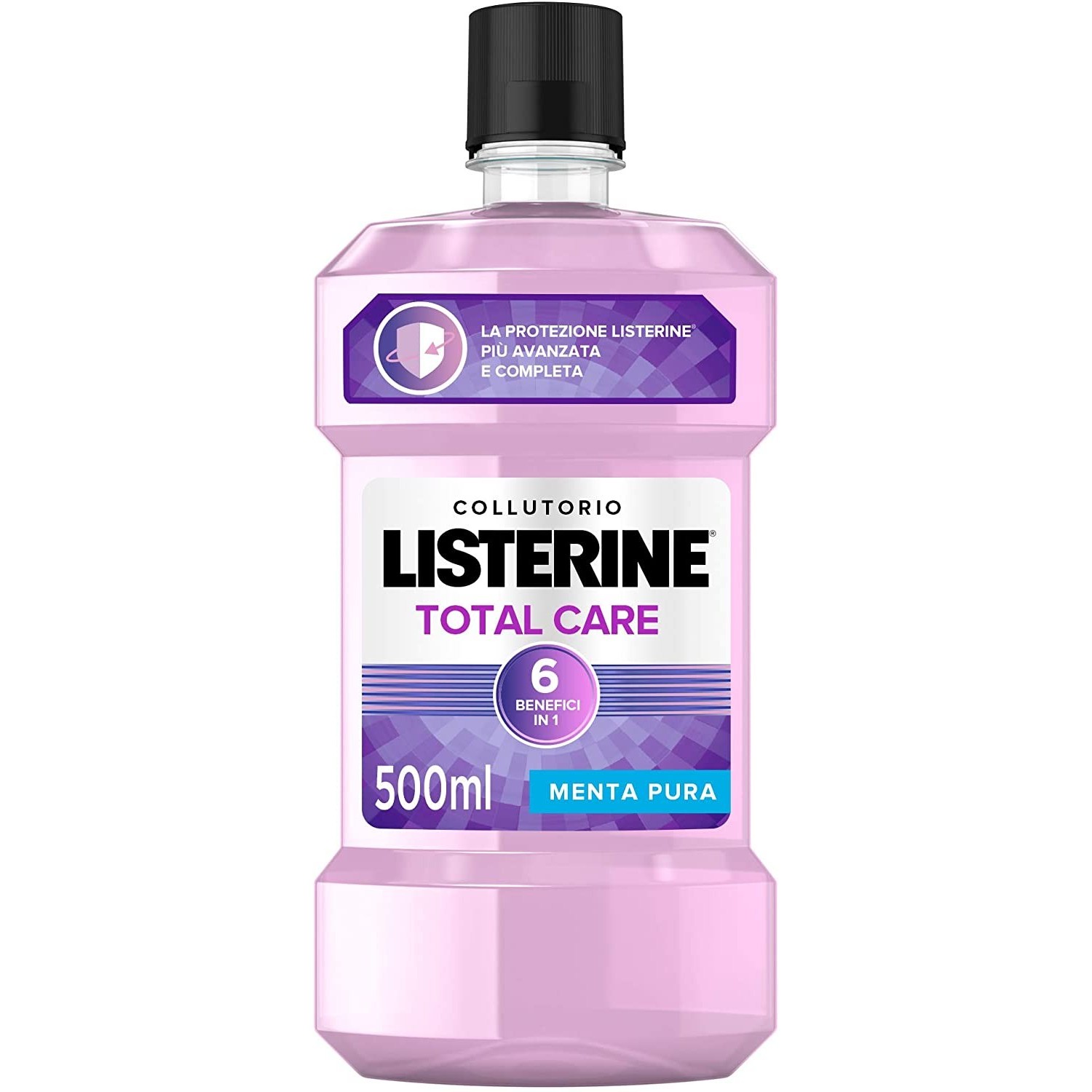 Listerine Total Care 6 Benefici in 1: combatte batteri, riduce placca e gengiviti, protegge smalto e gengive e alito fresco.