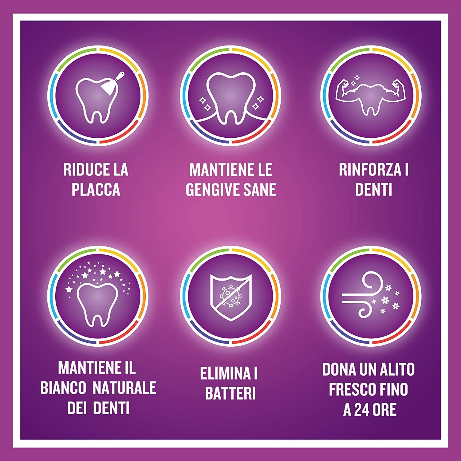- 6 benefici in 1: riduce la placca, previene il tartaro, protegge dalle carie e gengive sane, smalto rinforzato e alito fresco.