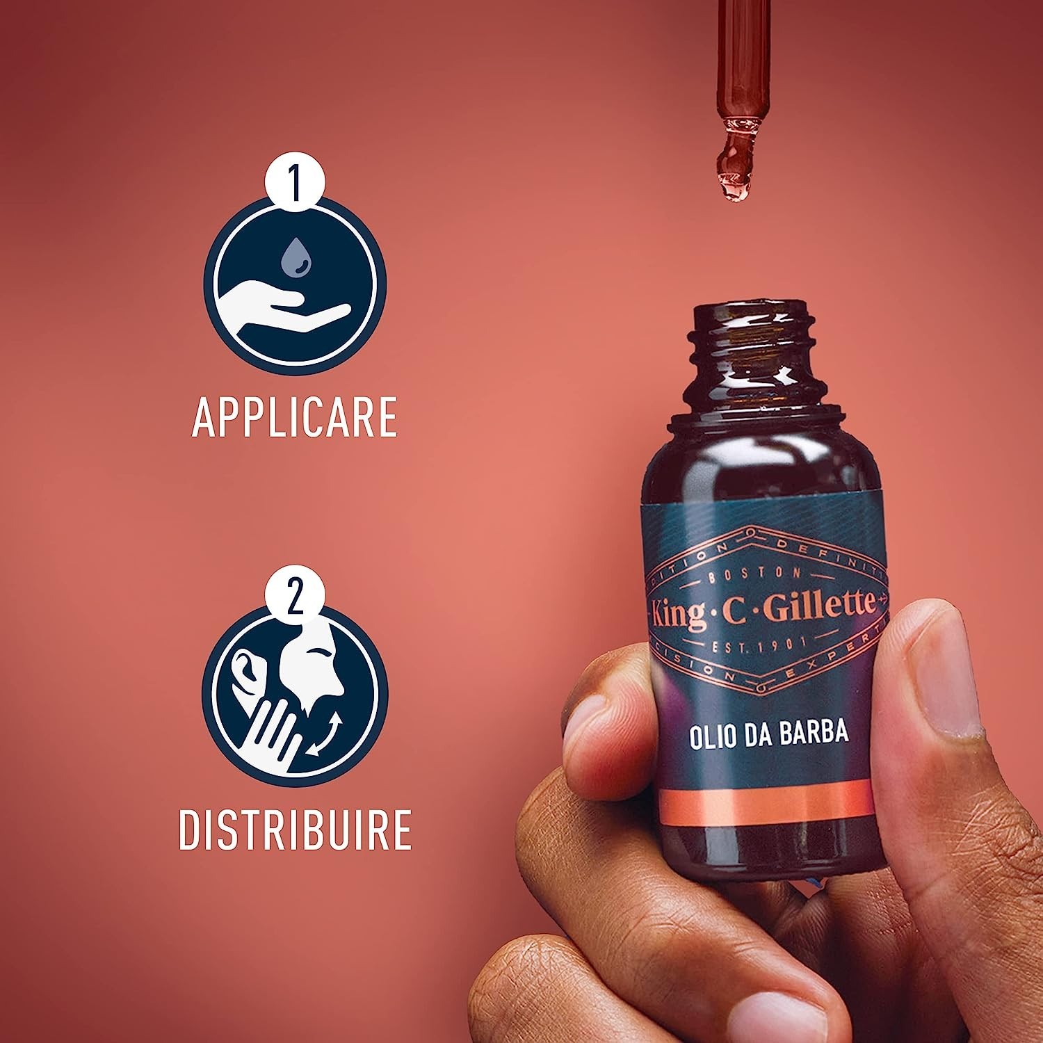 Con l'olio da barba King C. Gillette, la tua barba sarà morbida, lucente e facilmente pettinabile.