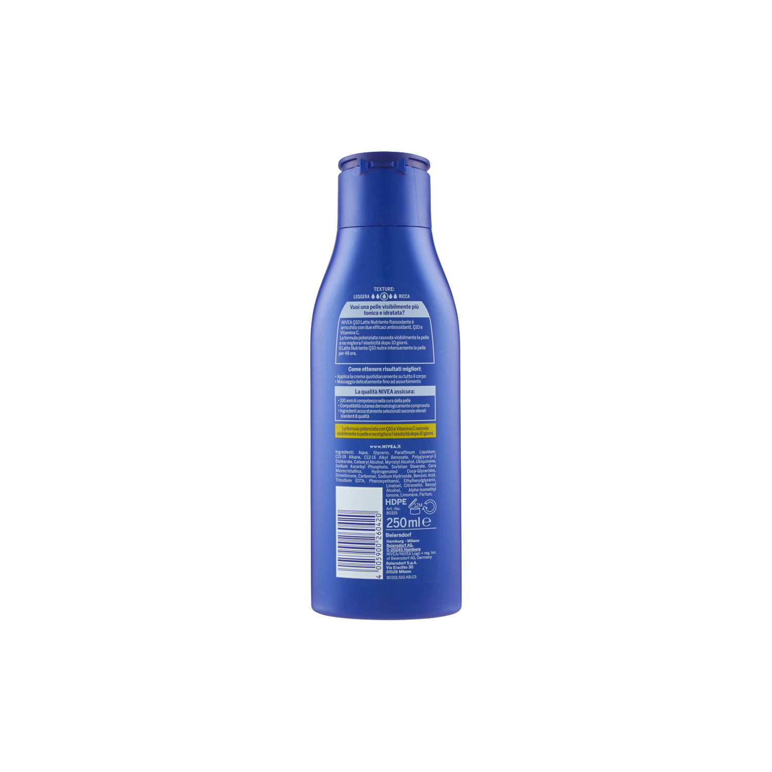 Nivea q10 latte nutriente rassodante è arricchito con due efficaci antiossidanti, q10 e vitamina c.