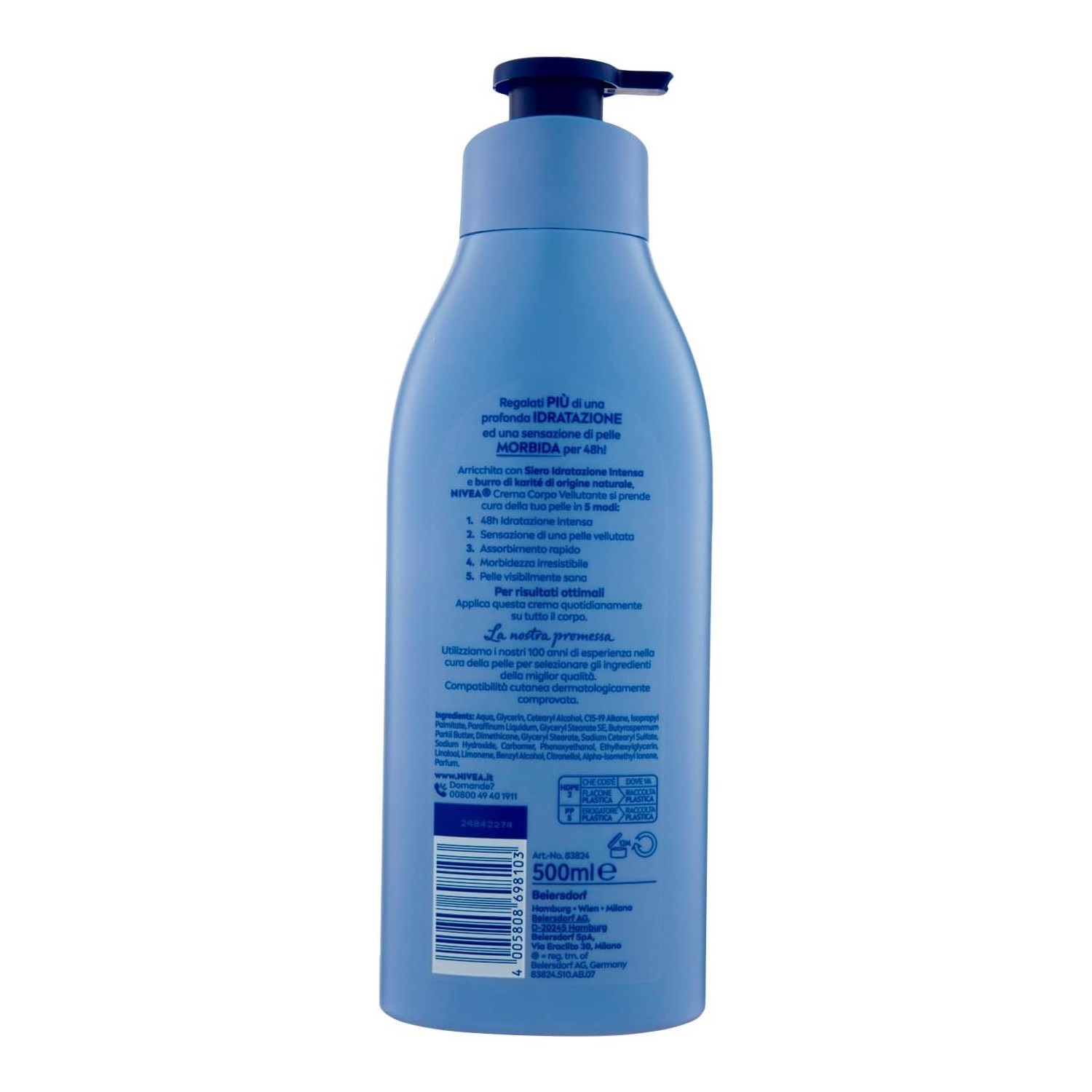 - Arricchita con Burro di Karitè e Nivea Siero Idratazione Intensa per nutrire la pelle in profondità.