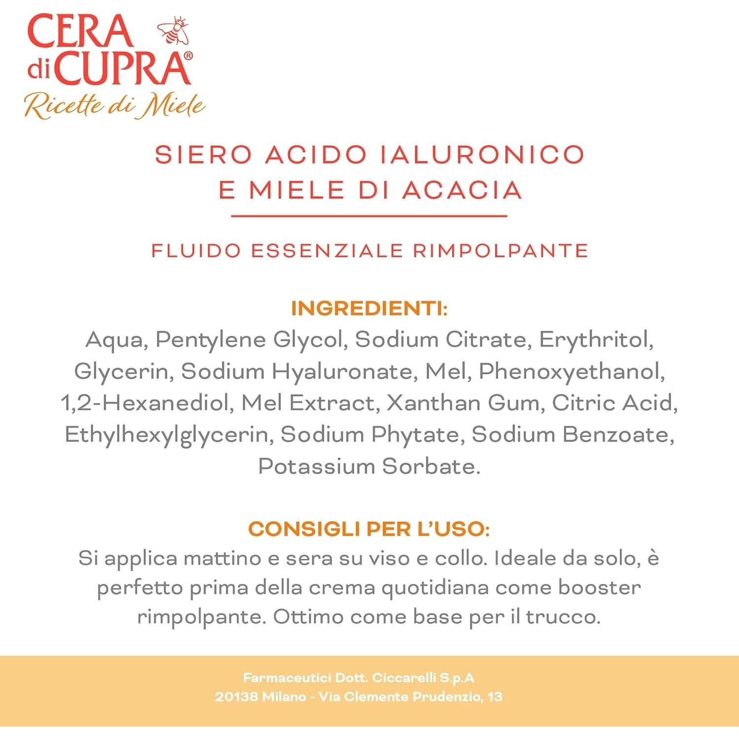 Ingredienti e consigli d'uso del Siero Cera di Cupra Acido Ialuronico