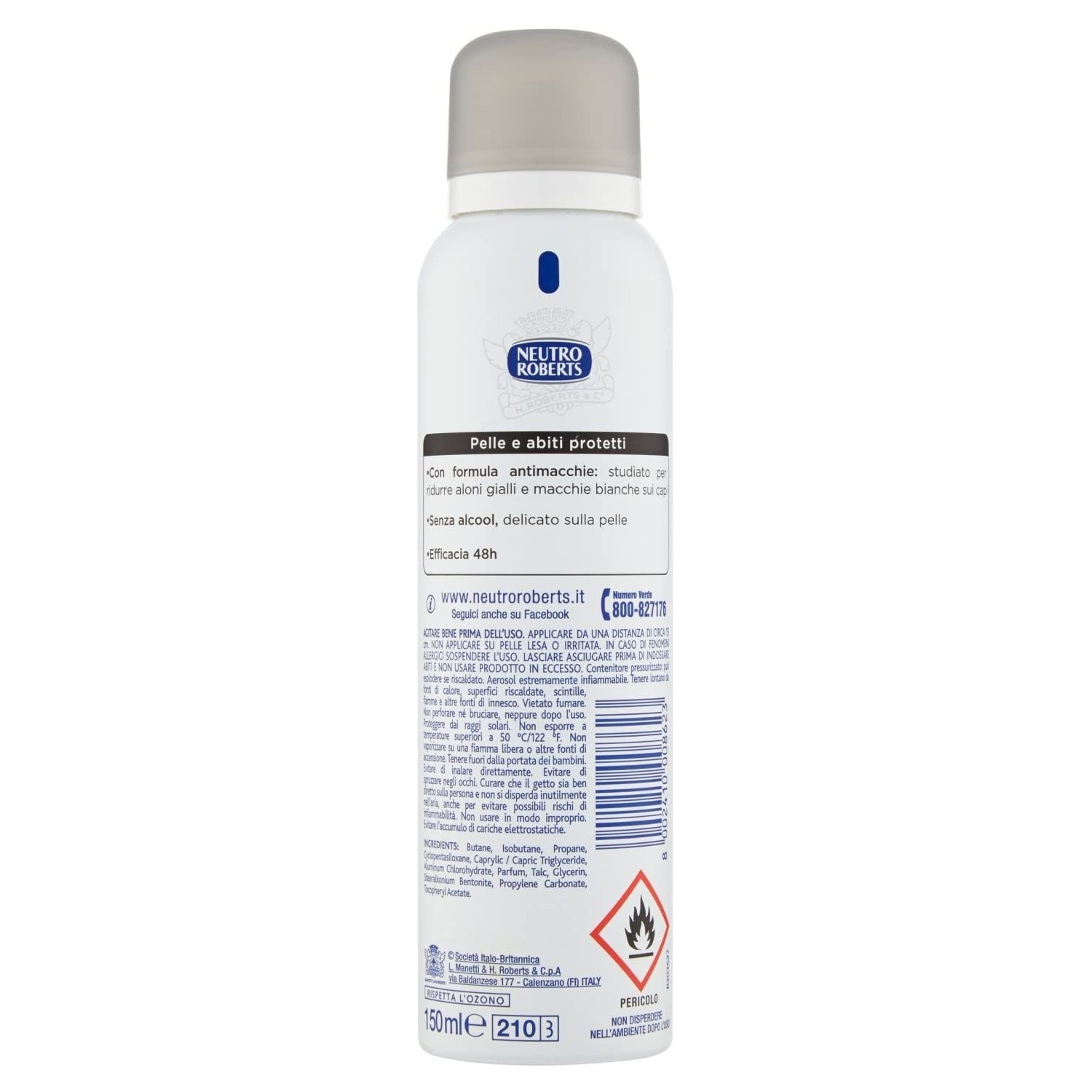 Neutro Roberts Deodorante Spray Invisible Senza Alcool Anti Macchie 150ml