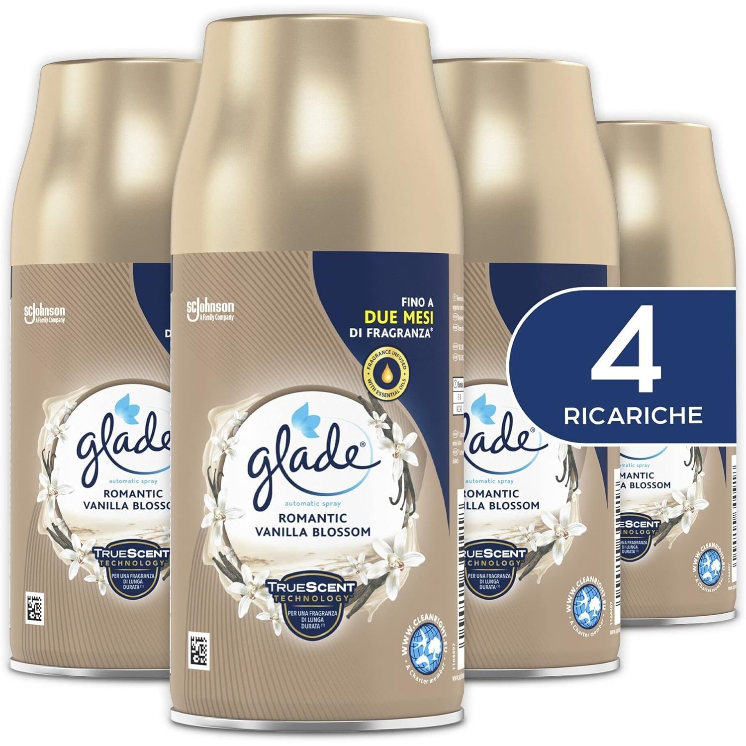 Glade Automatic Spray Ricarica, Fragranza Romantic Vanilla Blossom - Confezione Scorta 4x269ml