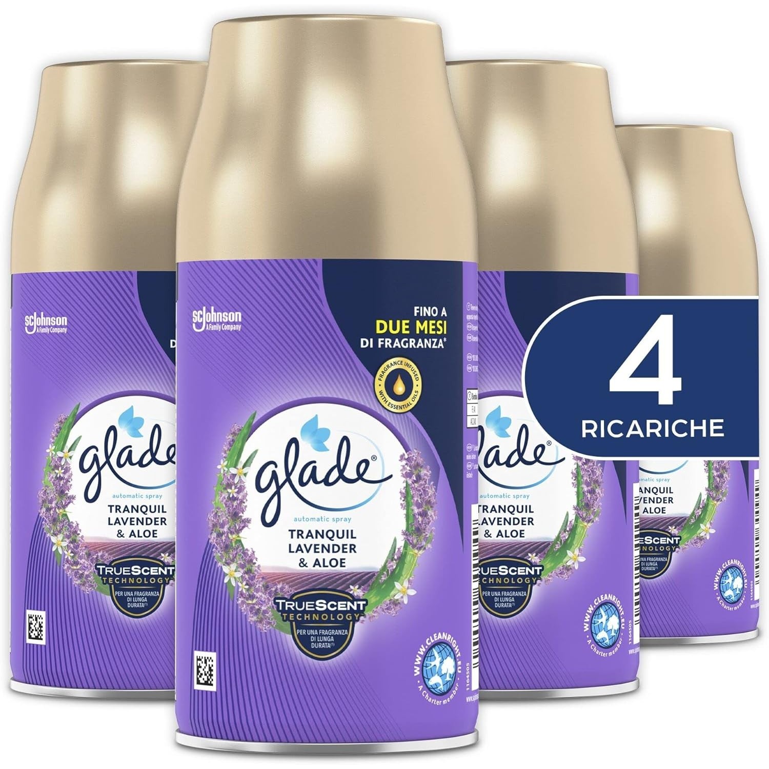 Glade Deodorante Ambiente Spray Ricarica per diffusore Automatic Fragranza Lavanda e Aloe - Confezione Scorta 4x269ml