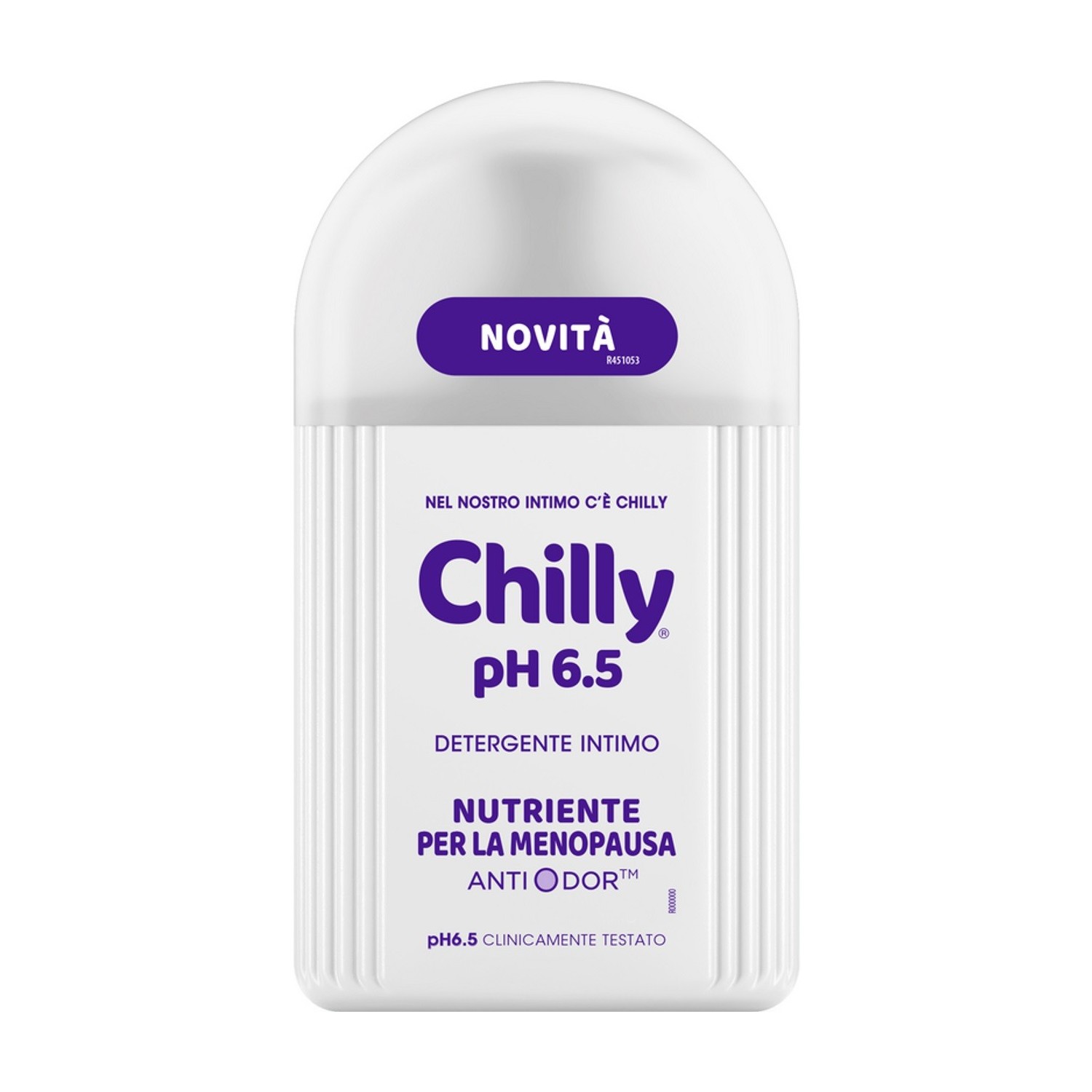 Chilly Detergente Intimo pH 6.5, arricchito con acido ialuronico, dona nutrimento e una piacevole sensazione di comfort durante la menopausa.