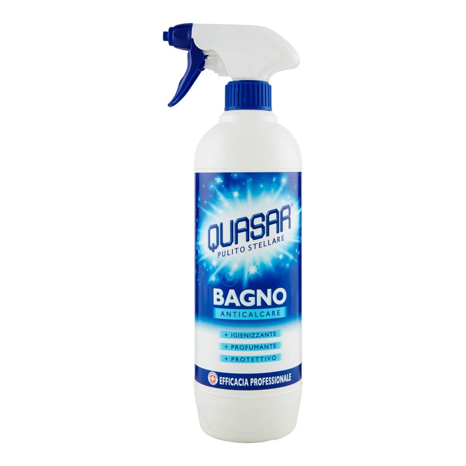 Quasar Bagno: rimuove efficacemente sporco, residui di sapone e calcare facendo brillare sanitari, lavandini, rubinetterie e piastrelle senza tracce e aloni. Crea una protezione che aiuta a prevenire le macchie d'acqua, igienizza il bagno rendendolo gradevolmente profumato e asciuga rapidamente.