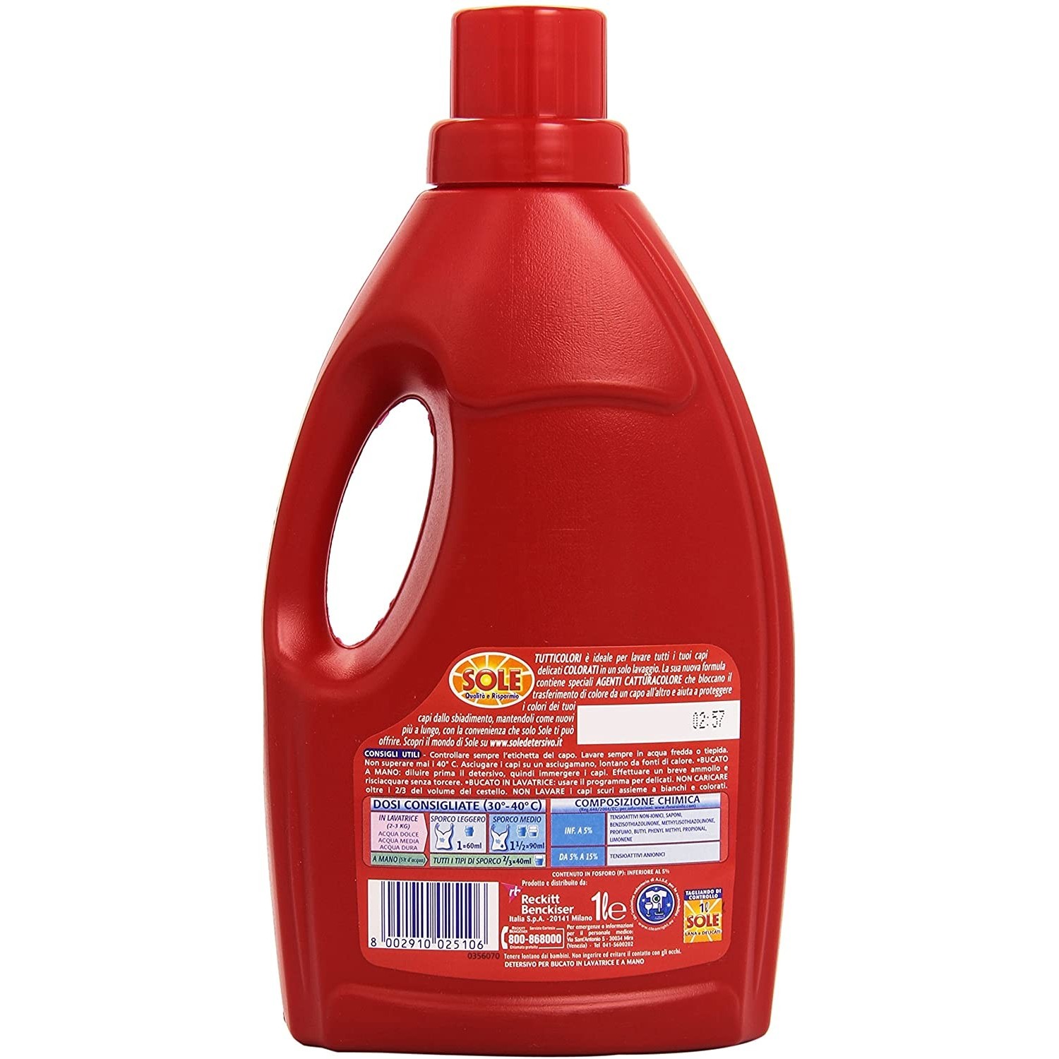 Acquista ora il Detersivo Lavatrice Sole Tuttocolori disponibile nel formato da 1L e adatto a lavaggi misti o colorati.