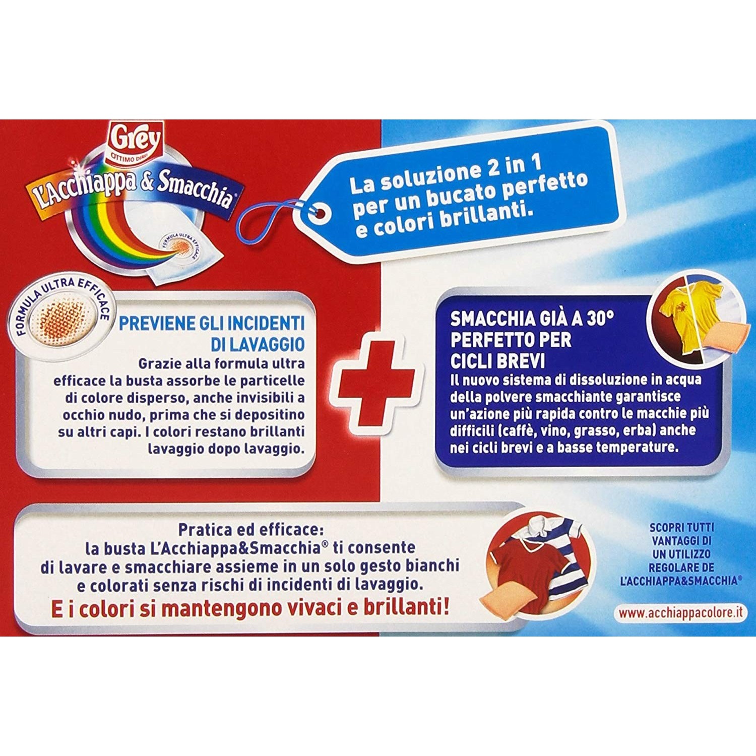 L’Acchiappa & Smacchia® è il prodotto che cura al tempo stesso la pulizia, i colori e la qualità dei tuoi capi grazie a una nuova formula che evita gli incidenti di lavaggio, rimuove le macchie e valorizza i colori.