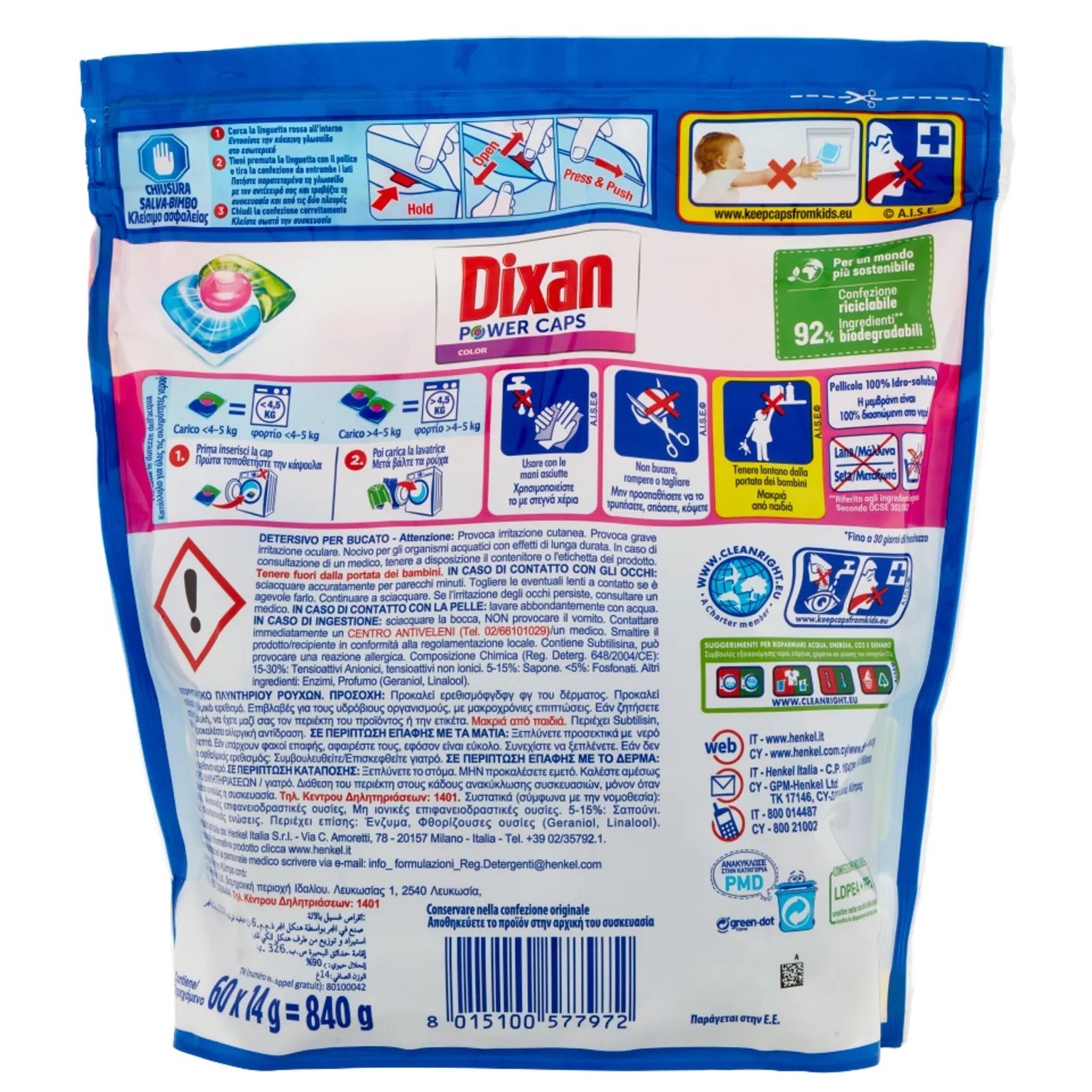Per un bucato inferiore a 4-5kg, utilizza 1 capsula; per carichi superiori, 2 capsule. Inseriscile direttamente nel cestello, scegli il programma desiderato e lascia che Dixan faccia il resto. Ricorda di maneggiare le capsule con mani asciutte e di conservarle in un luogo sicuro, lontano dalla portata dei bambini.