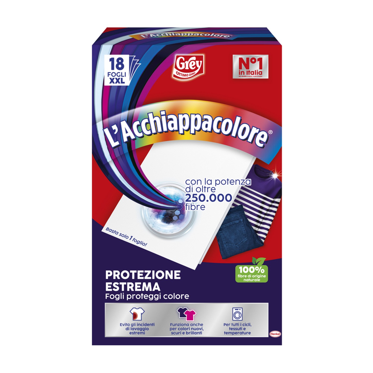 Grey L'Acchiappacolore Protezione Estrema è la soluzione ideale per proteggere i tuoi capi dagli incidenti di lavaggio, garantendo la brillantezza dei colori, anche quelli più intensi e scuri.