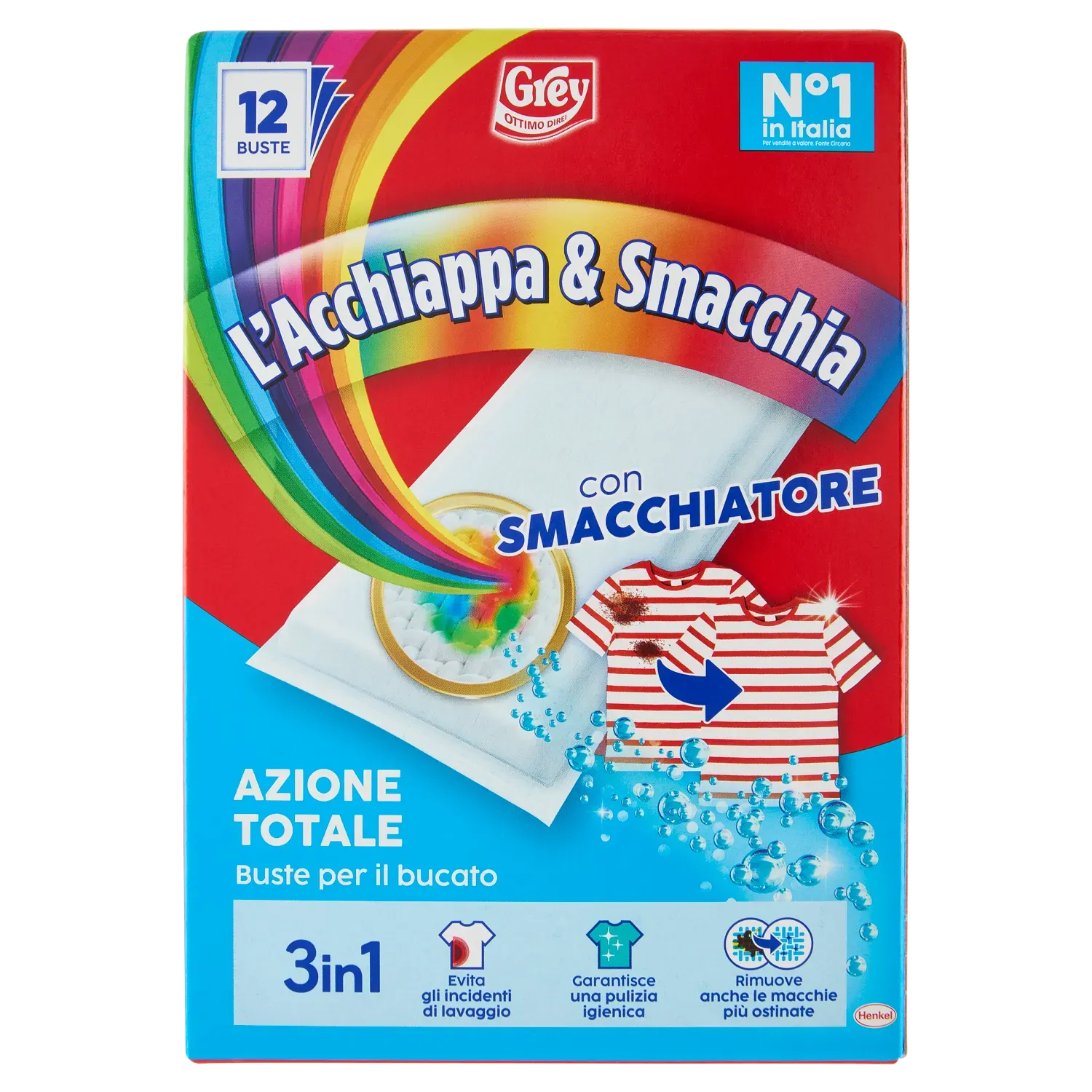 Con Grey Acchiappacolore e Smacchia, il tuo bucato è sempre protetto e impeccabile.