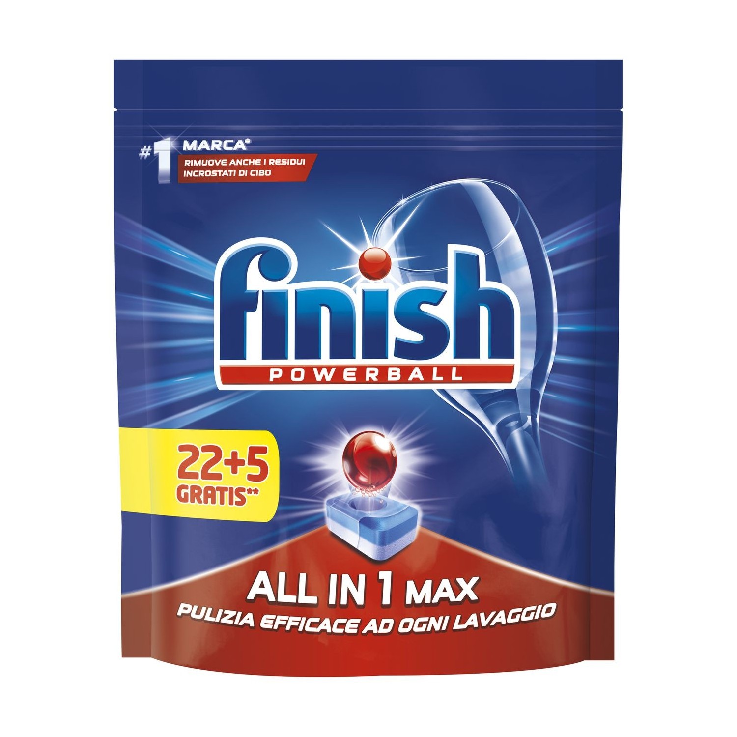 - La rivoluzionaria tecnologia Finish Powerball, con la sua azione brillantante, spazza via i residui ed elimina le macchie e gli aloni, per una brillantezza impeccabile.
