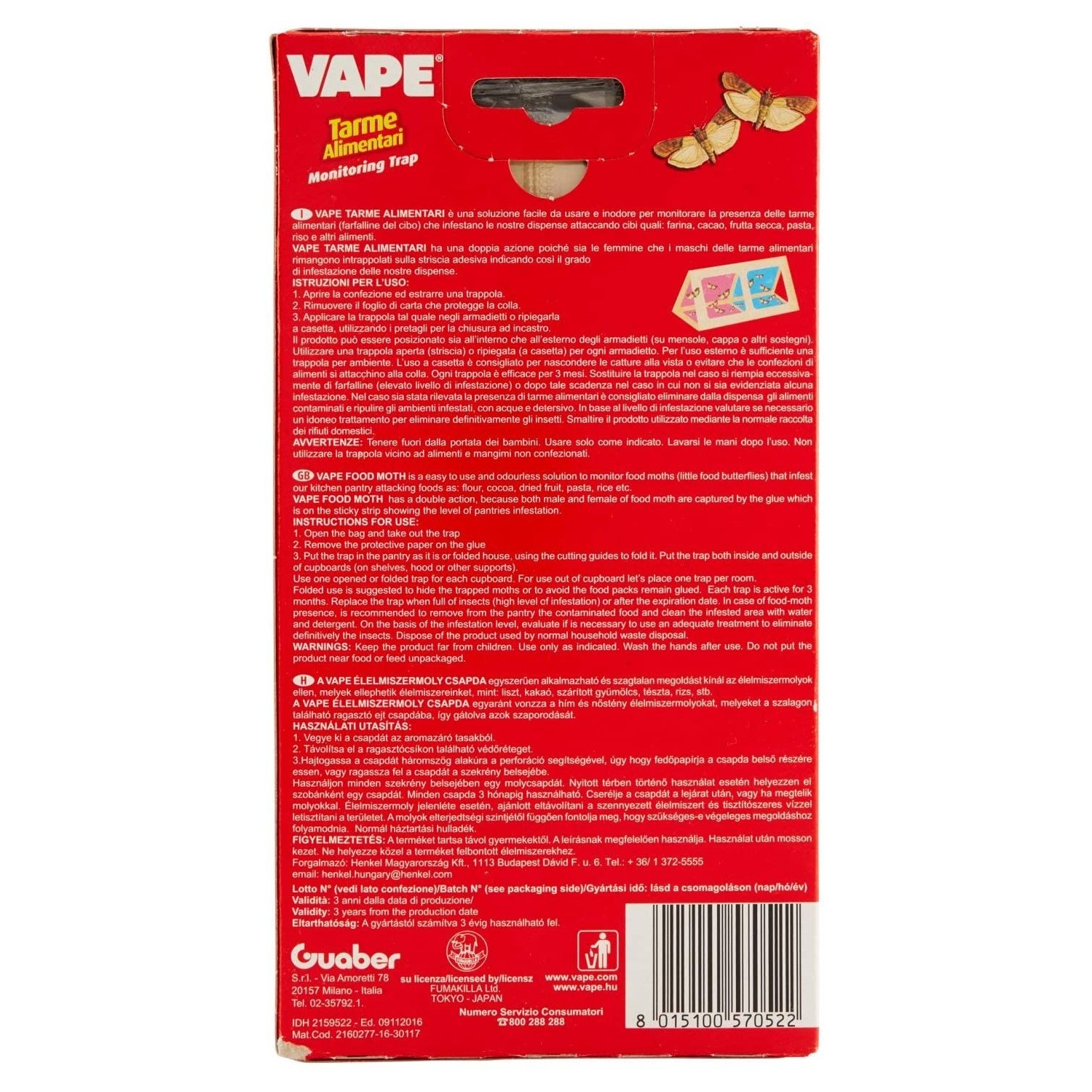 Vape Tarme Alimentari protegge la dispensa dalle tarme. E’un prodotto dalla formula efficace e sicura che consente di monitorare la presenza delle tarme alimentari nei luoghi infestati.