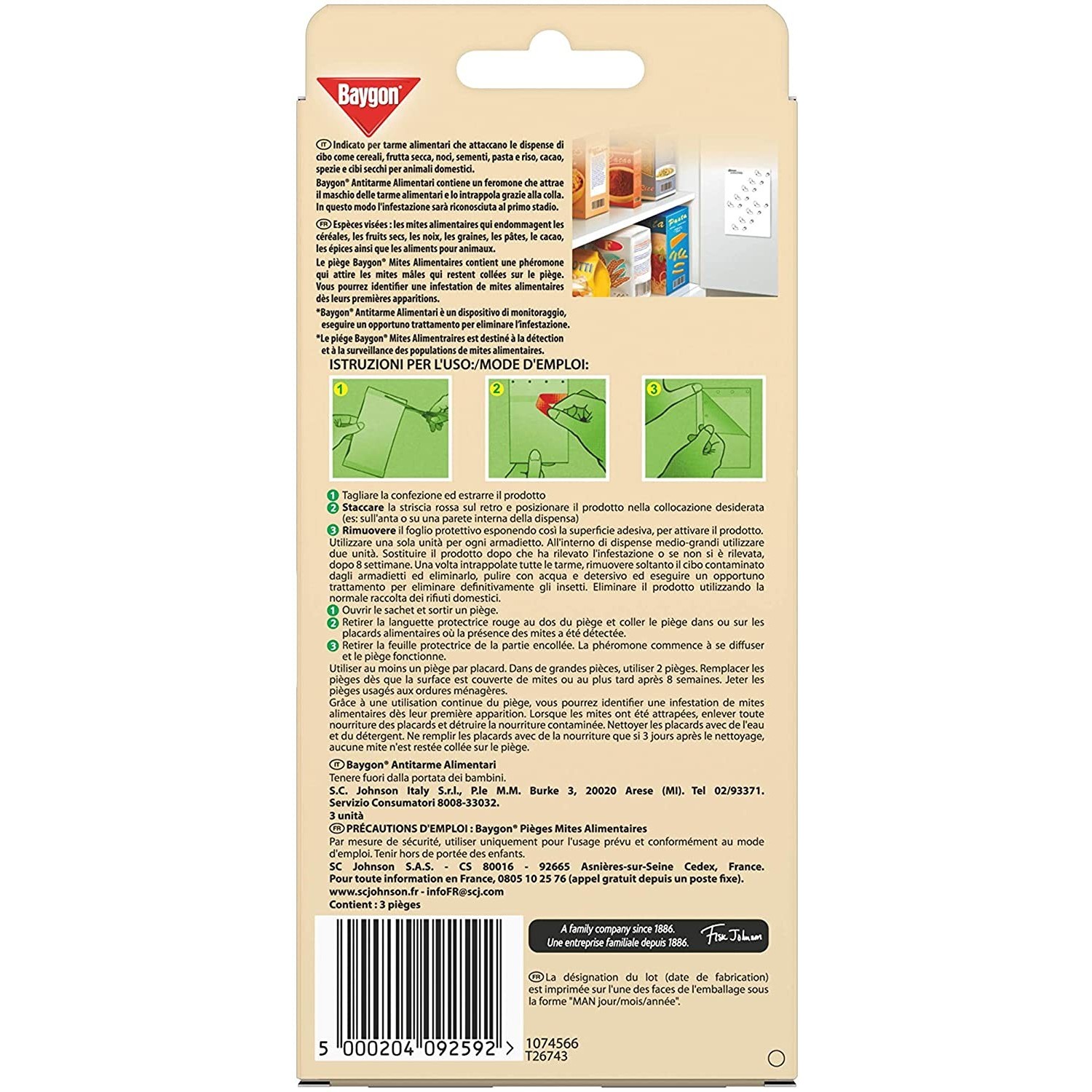 Il Baygon Antitarme Alimentari offre una soluzione mirata per rilevare e intrappolare le tarme alimentari nella tua cucina.