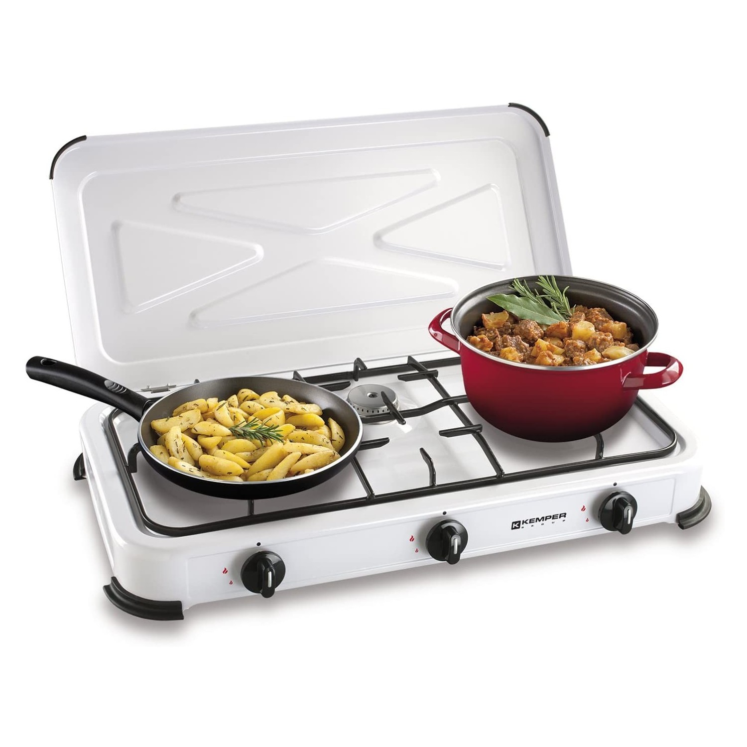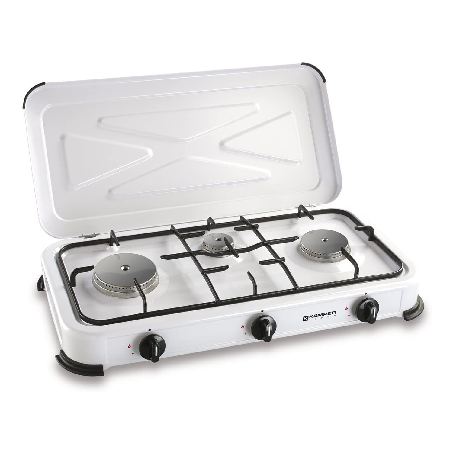 Fornello a Gas Campeggio Kemper - 3 Fuochi e Coperchio - Potenza 3,45 kW