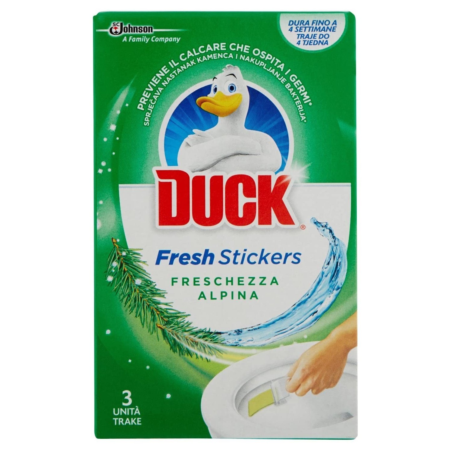 Il Profumatore per Wc Duck Fresh Stickers – Freschezza Alpina sono strisce gel progettate per il WC.
