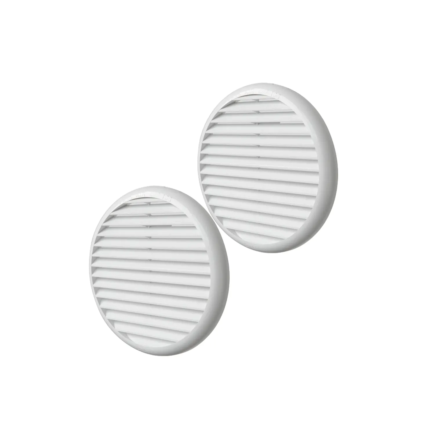 Ogni confezione contiene 2 griglie di aerazione tonde bianche in plastica.