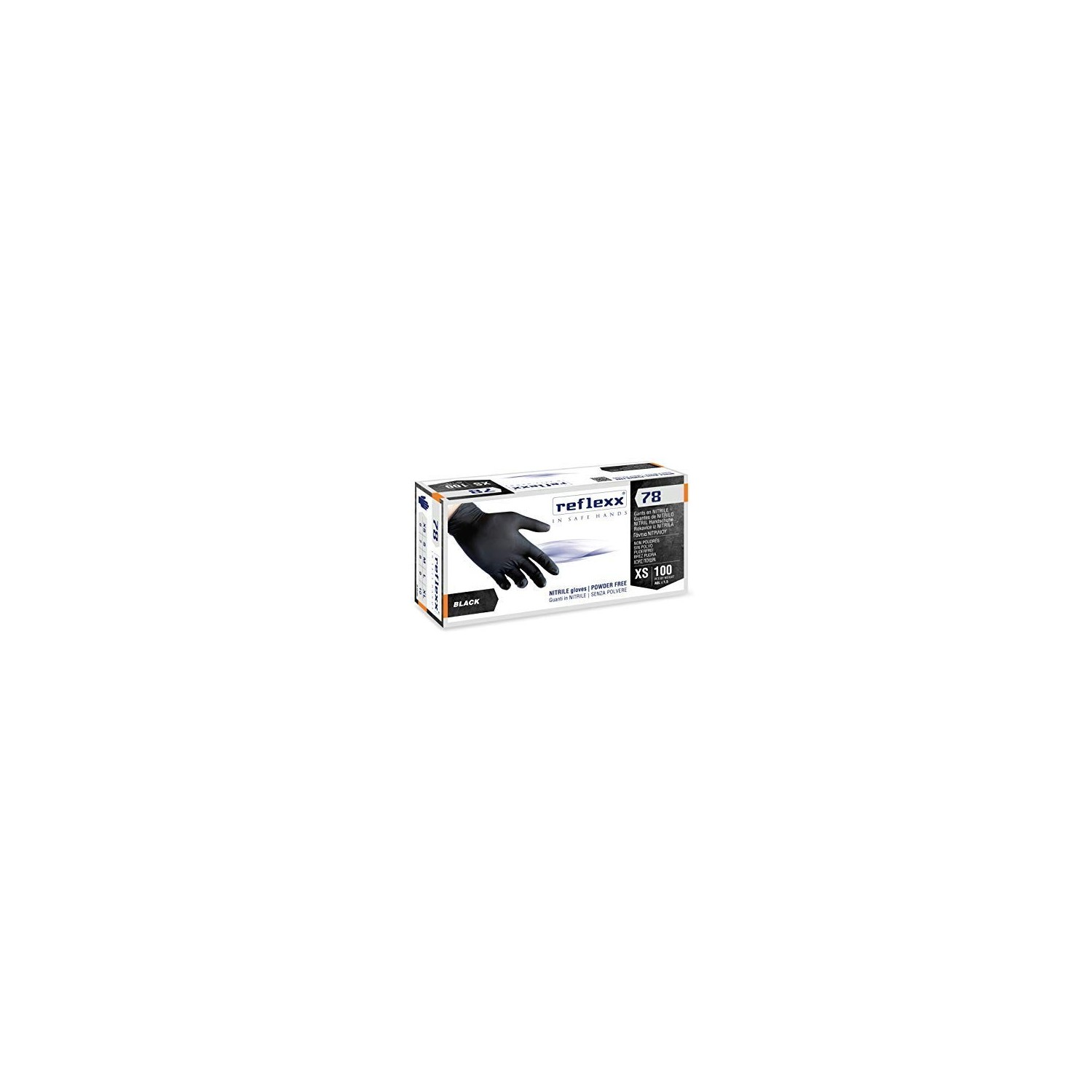 Guanti in nitrile Reflexx R78 Neri Senza Polvere, 100 pz Tg 8