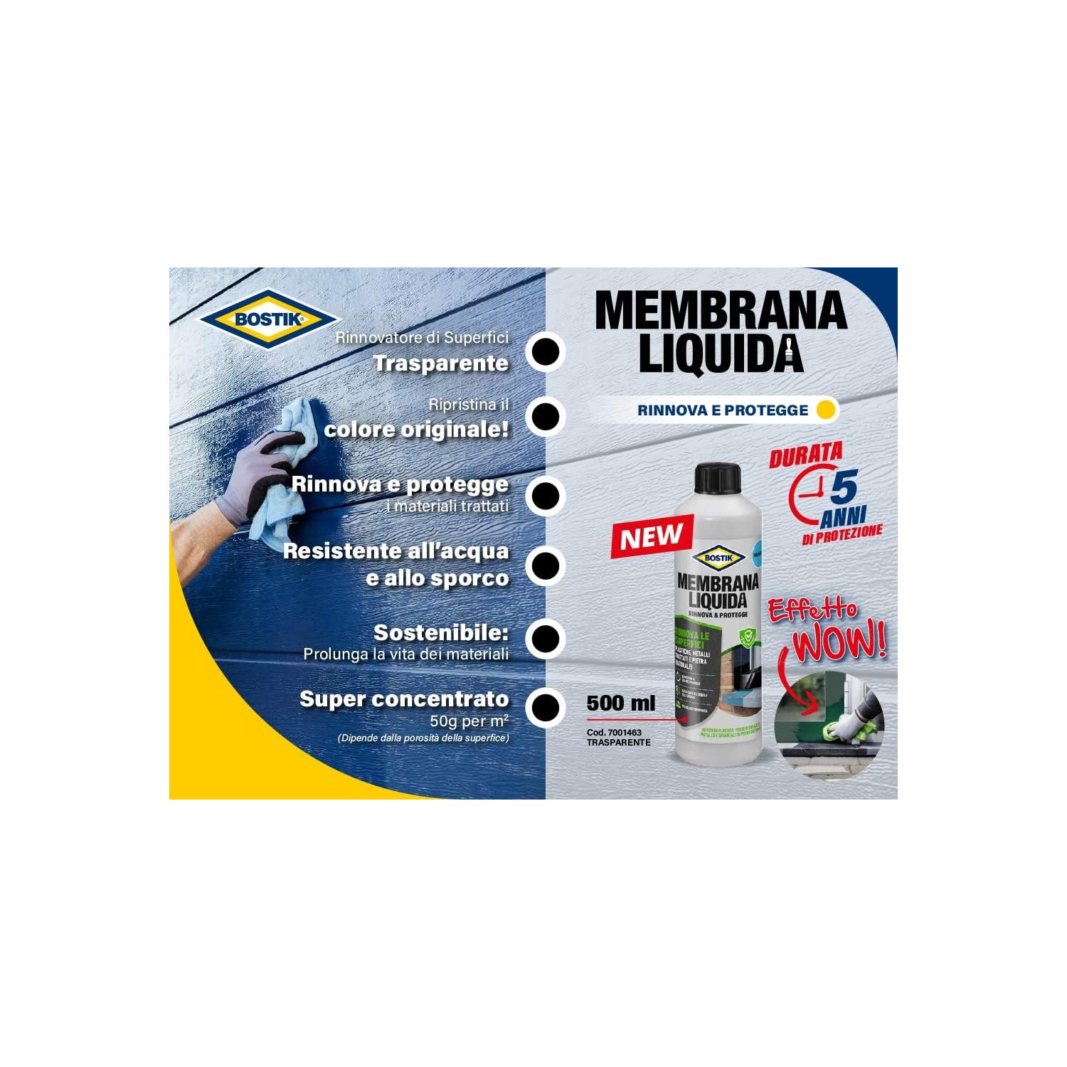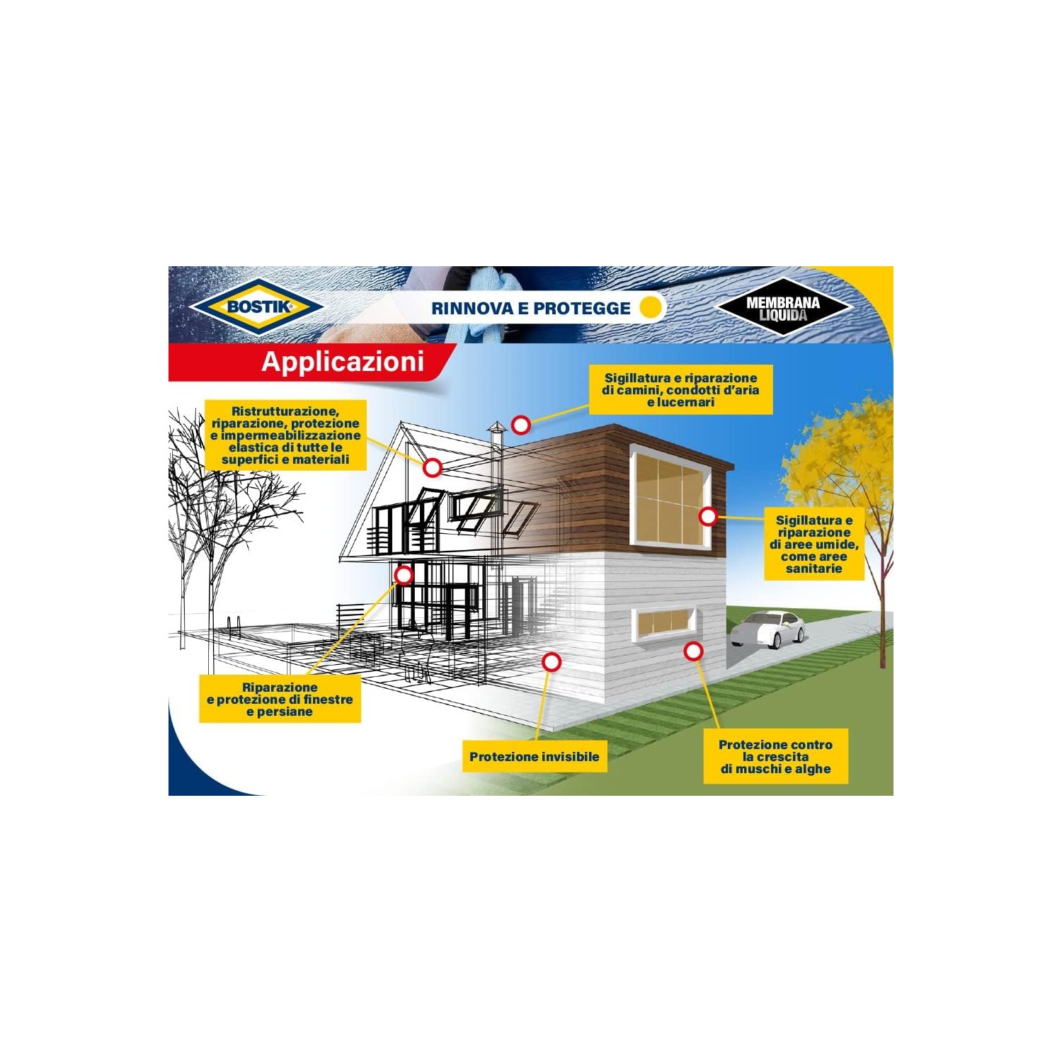 Membrana liquida Bostik , soluzione professionale trasparente progettata per il trattamento protettivo di superfici in plastica, metallo e pietra.