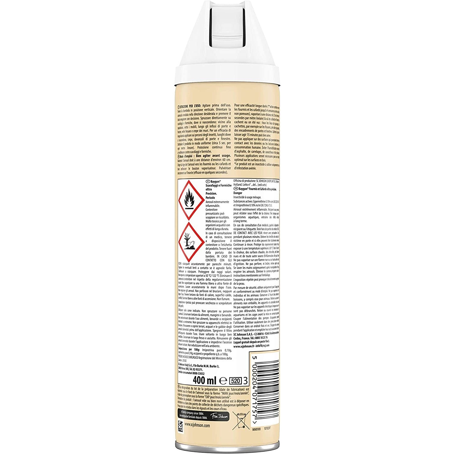Insetticida Baygon Spray per Scarafaggi, Formiche e Pesciolini d’Argento – 400 ml