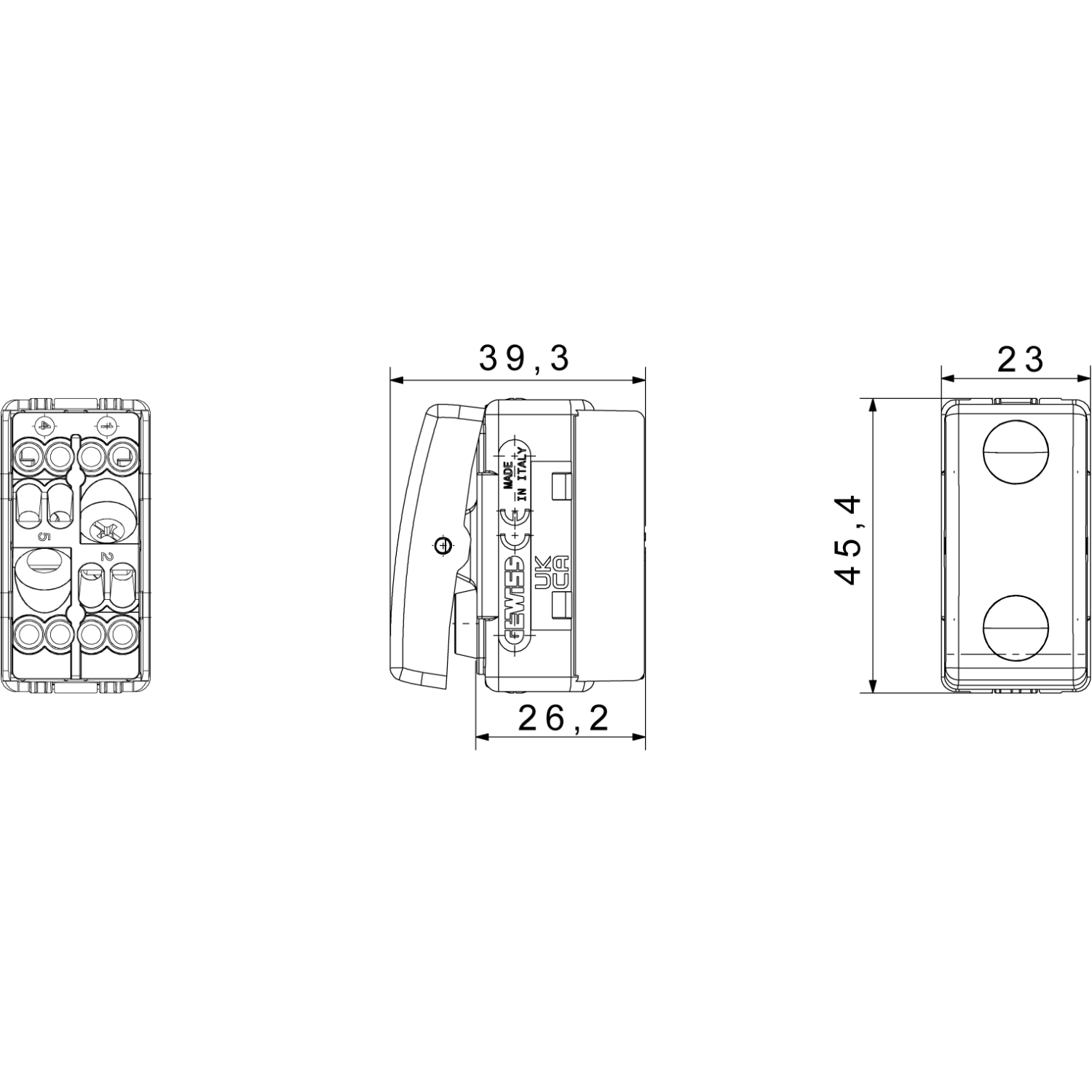 I morsetti a vite permettono un cablaggio stabile con cavi rigidi e flessibili nelle sezioni previste. L’invertitore può essere utilizzato in impianti di illuminazione dove è necessario un comando aggiuntivo rispetto al circuito deviato tradizionale.