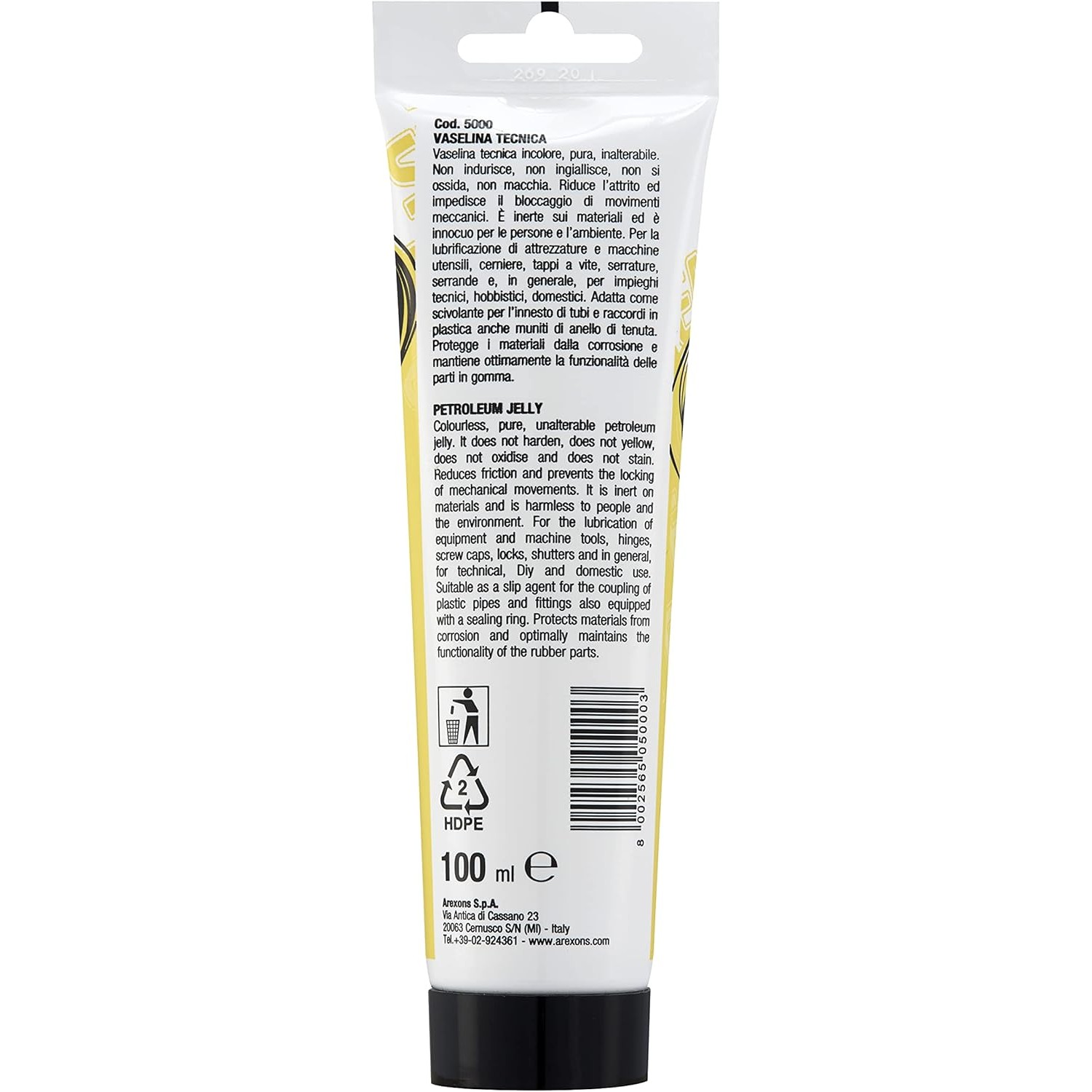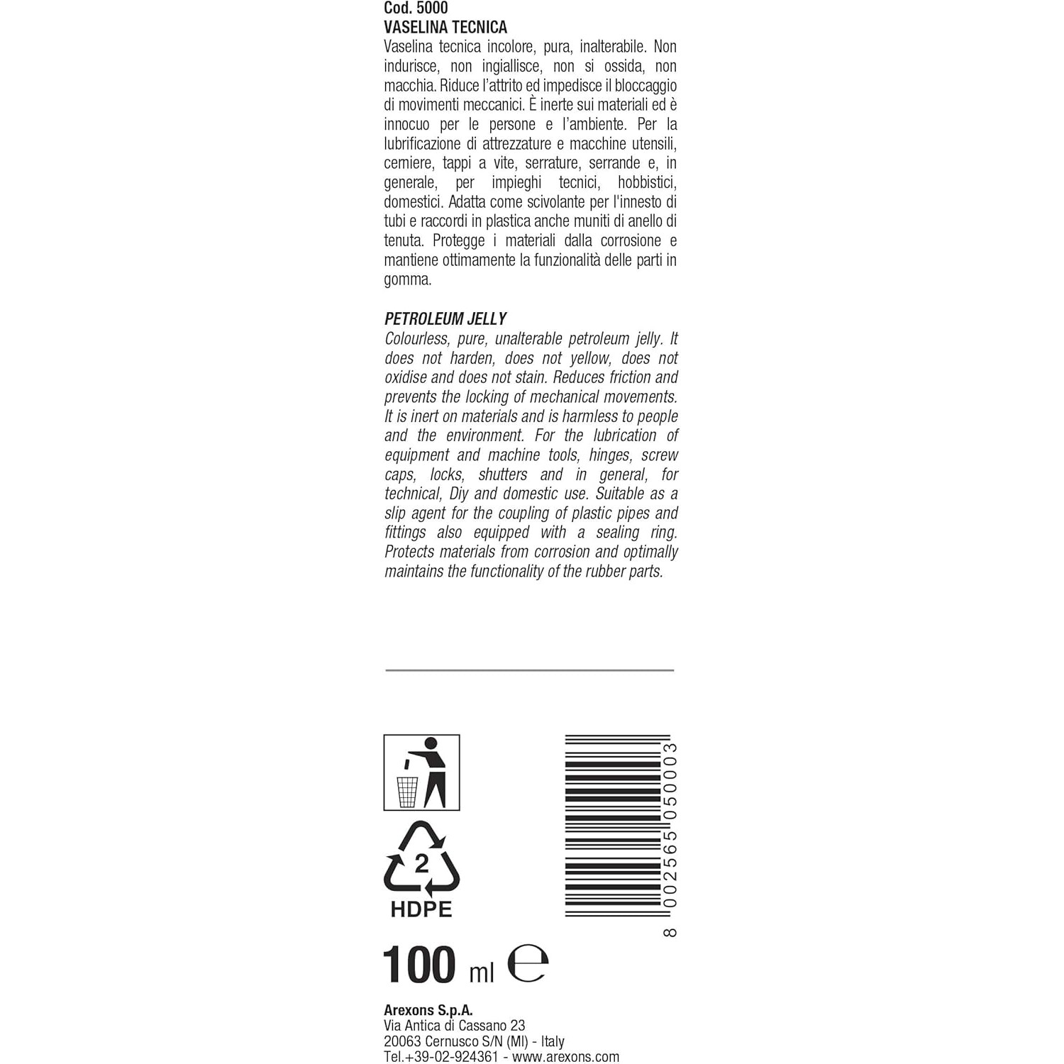 Grasso Vaselina Tecnica Arexons 100ml – Lubrificante Paraffinico Bianco