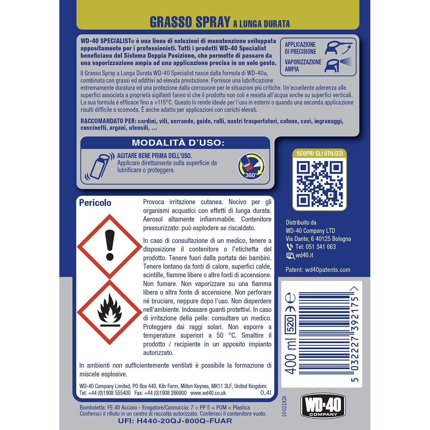 - Formula Avanzata WD40: Unisce la versatilità del WD-40 con l'efficacia di grassi additivi ad alte prestazioni.