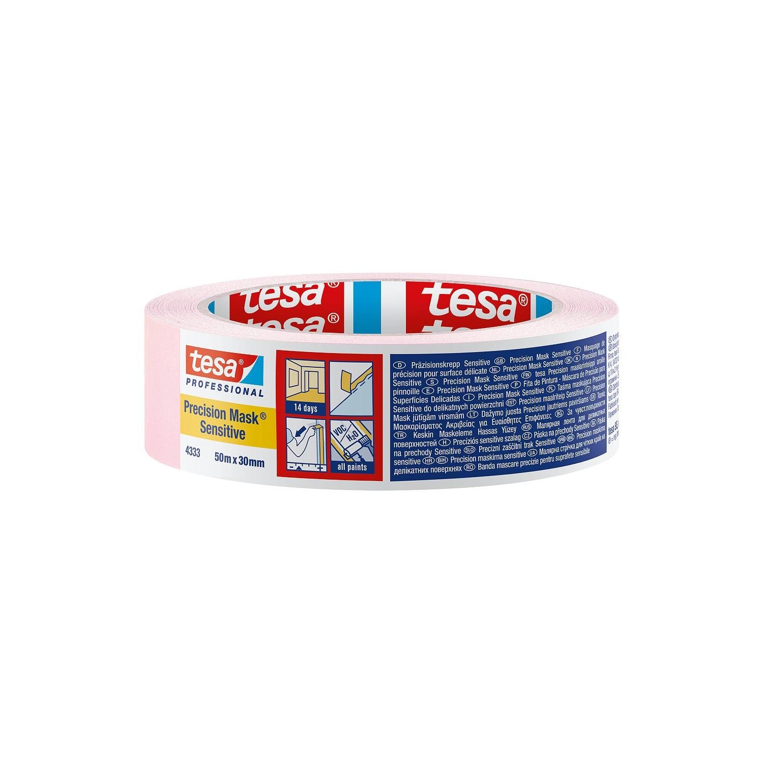tesa® 4334 Precision Mask è un nastro con un supporto in carta robusta ed extra fine rivestito di un adesivo in acrilico.