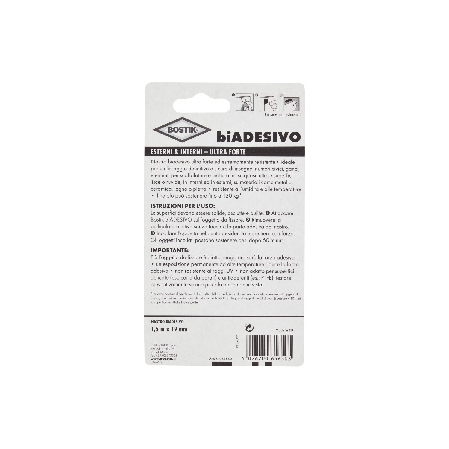 Bostik Nastro Biadesivo Per Interni & Esterni 19x1,5m - Ultra Forte