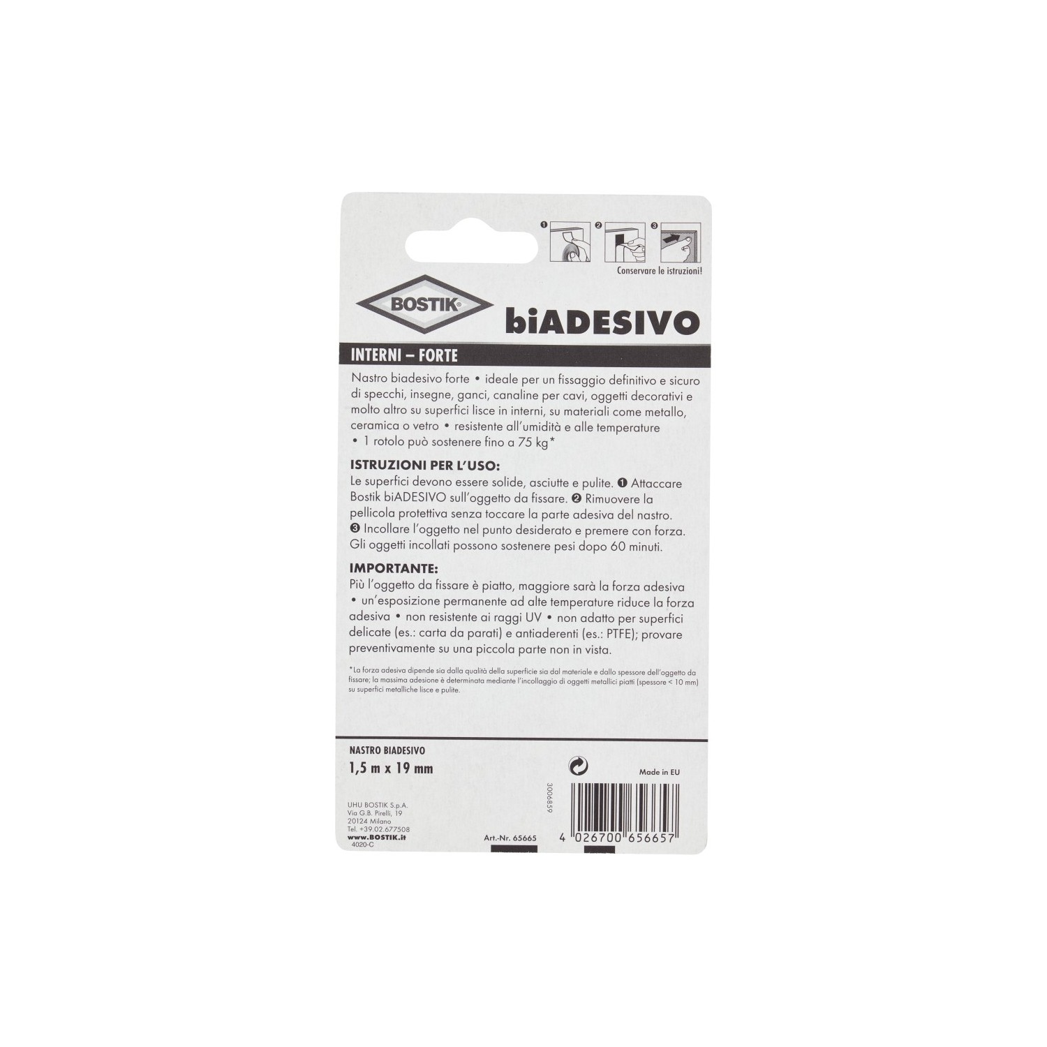 Biadesivo Bostik per Interni – Nastro di Montaggio Extra Forte 19 mm x 1,5m per fissaggi senza viti