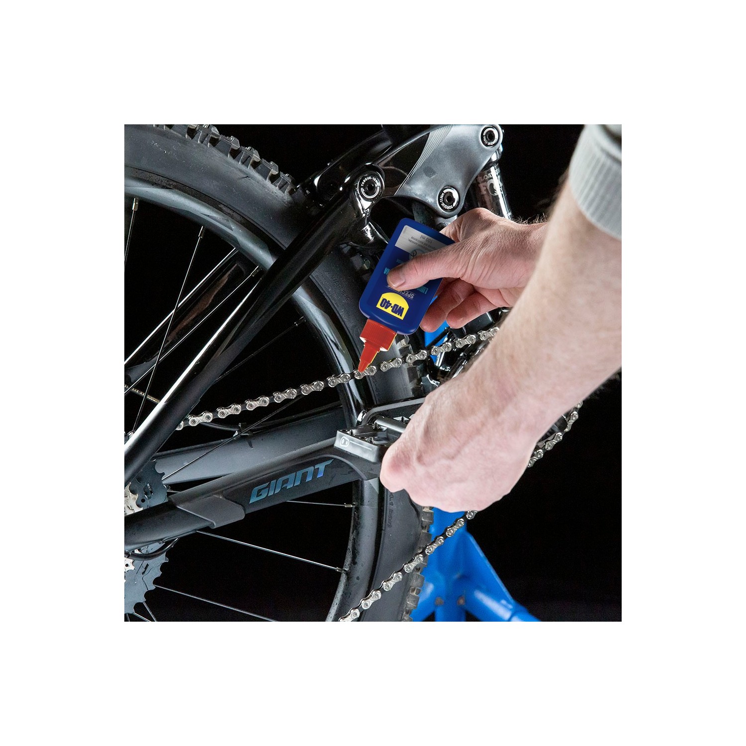 Prima di applicare il lubrificante, pulire la catena con Wd40 SPECIALIST BIKE Sgrassante.
